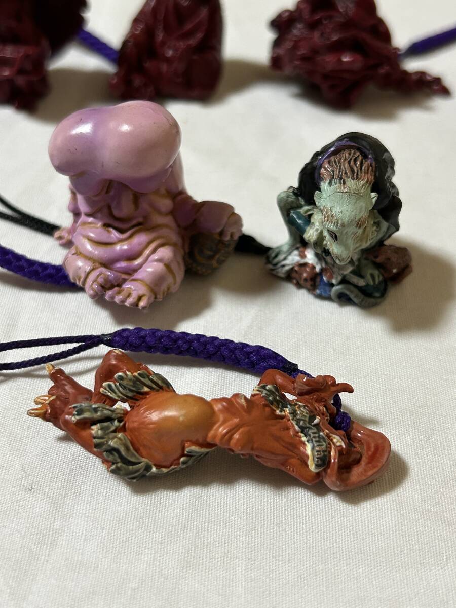 海洋堂 「妖怪根付」シリーズ フィギュア 10体まとめ商品です。 色付き「おとろし」のストラップはありません。 保管品である事をご理解いただき、詳しいことは分かりませんのでわかる方のみご入札をお願いします。 | |||