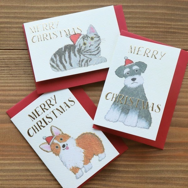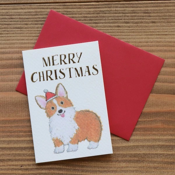 @【即決】★ミニカード クリスマスカード★グリーティングライフ コーギー 犬 封筒 グリーティングカード 二つ折り 米津祐介 // YZ-398