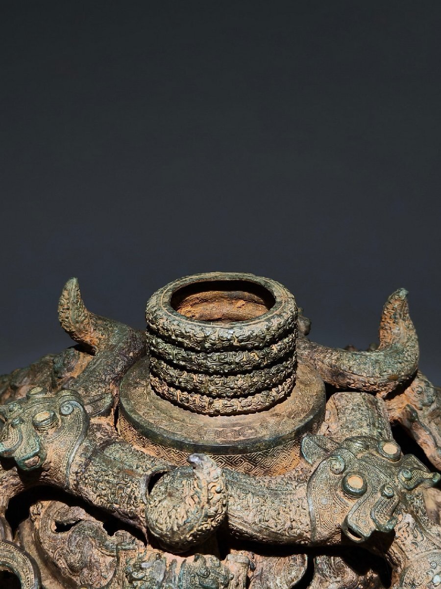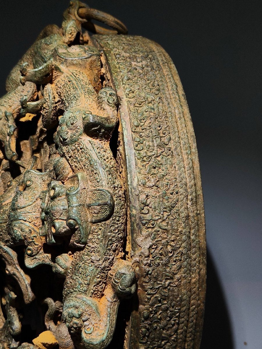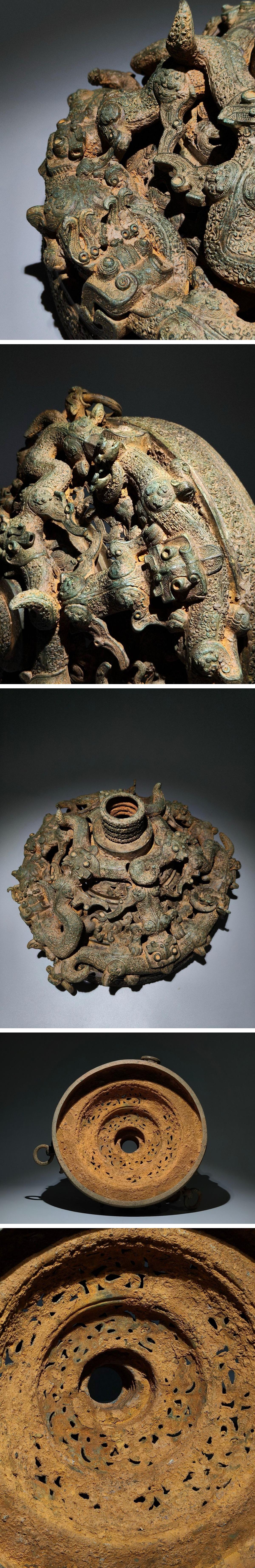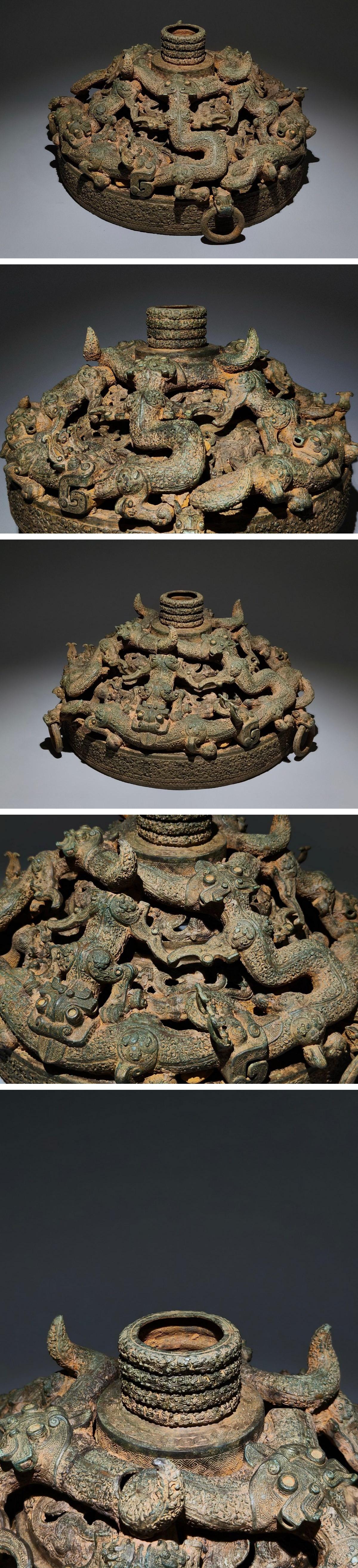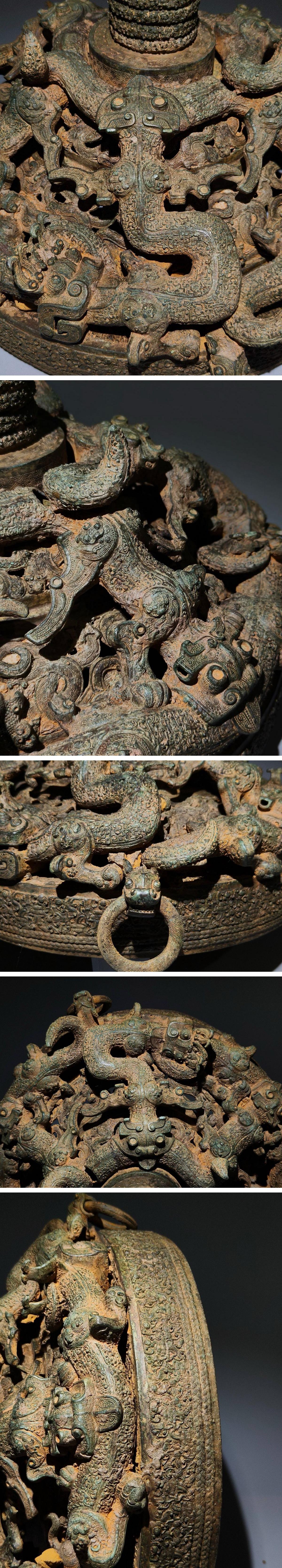 【清】某有名オークション購入 戦漢時代 青銅器 満工交龍文鼓座 材質保証 古置物 古擺件 古美術 時代コレクション7L9-ORE22