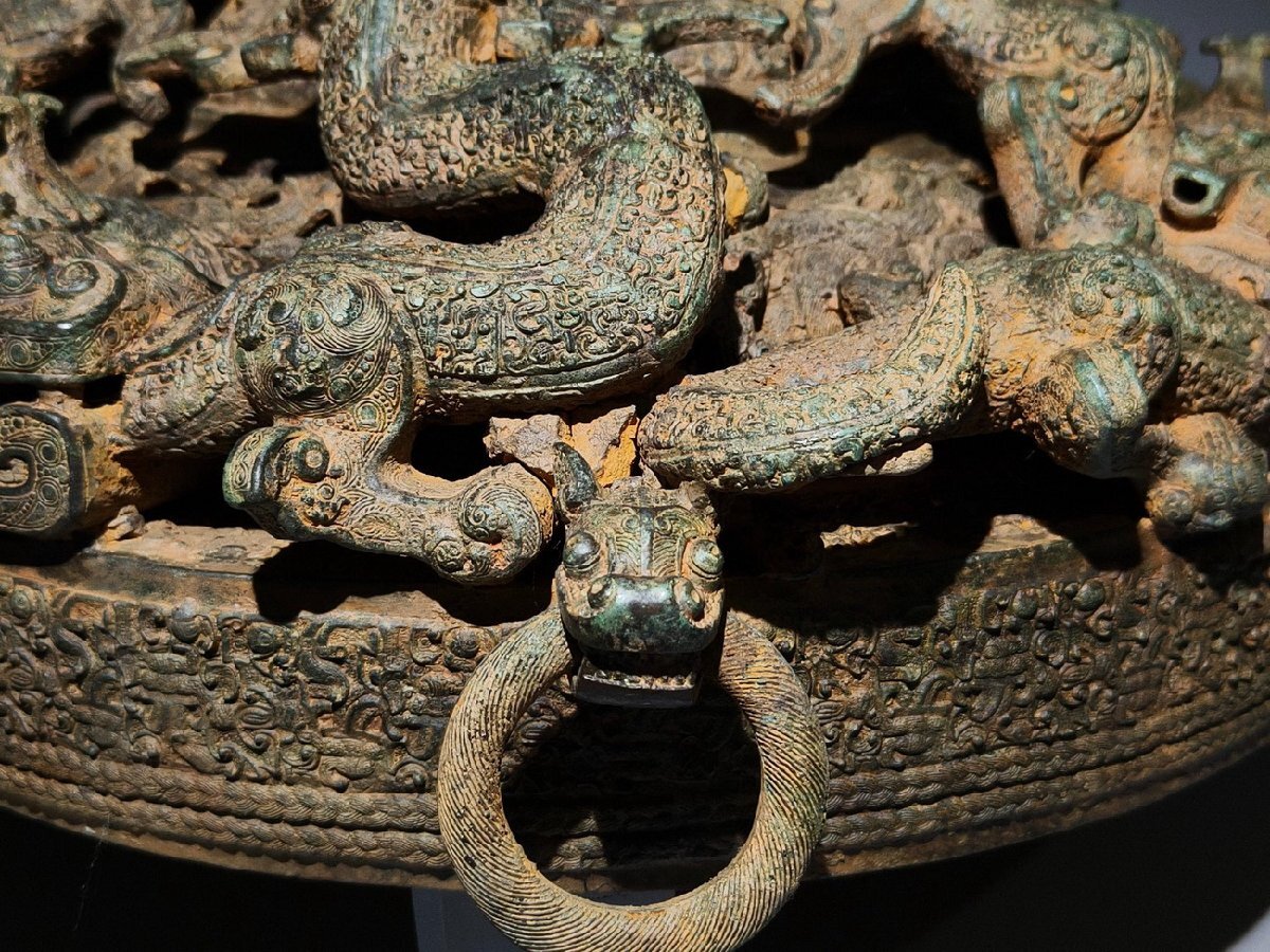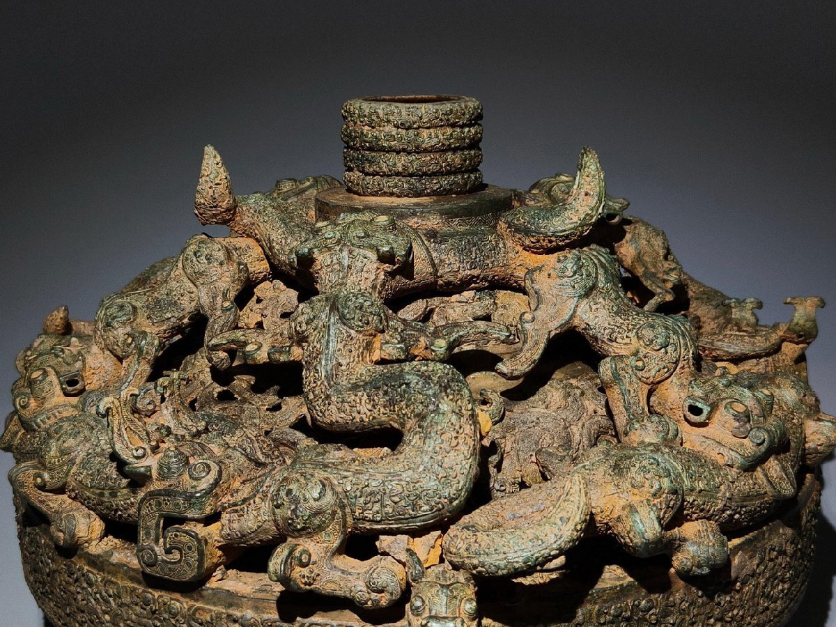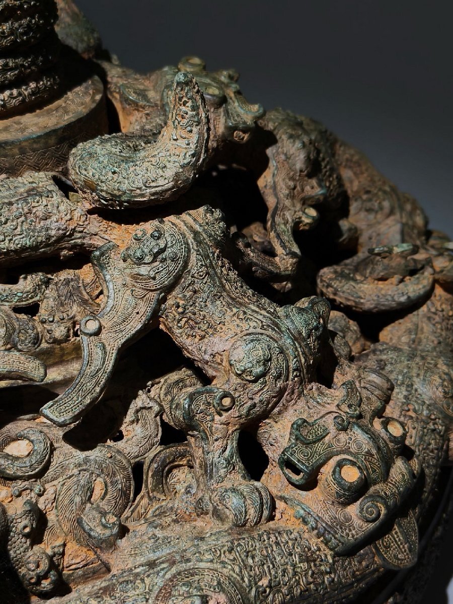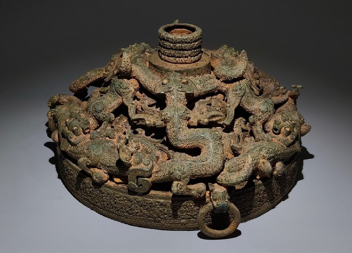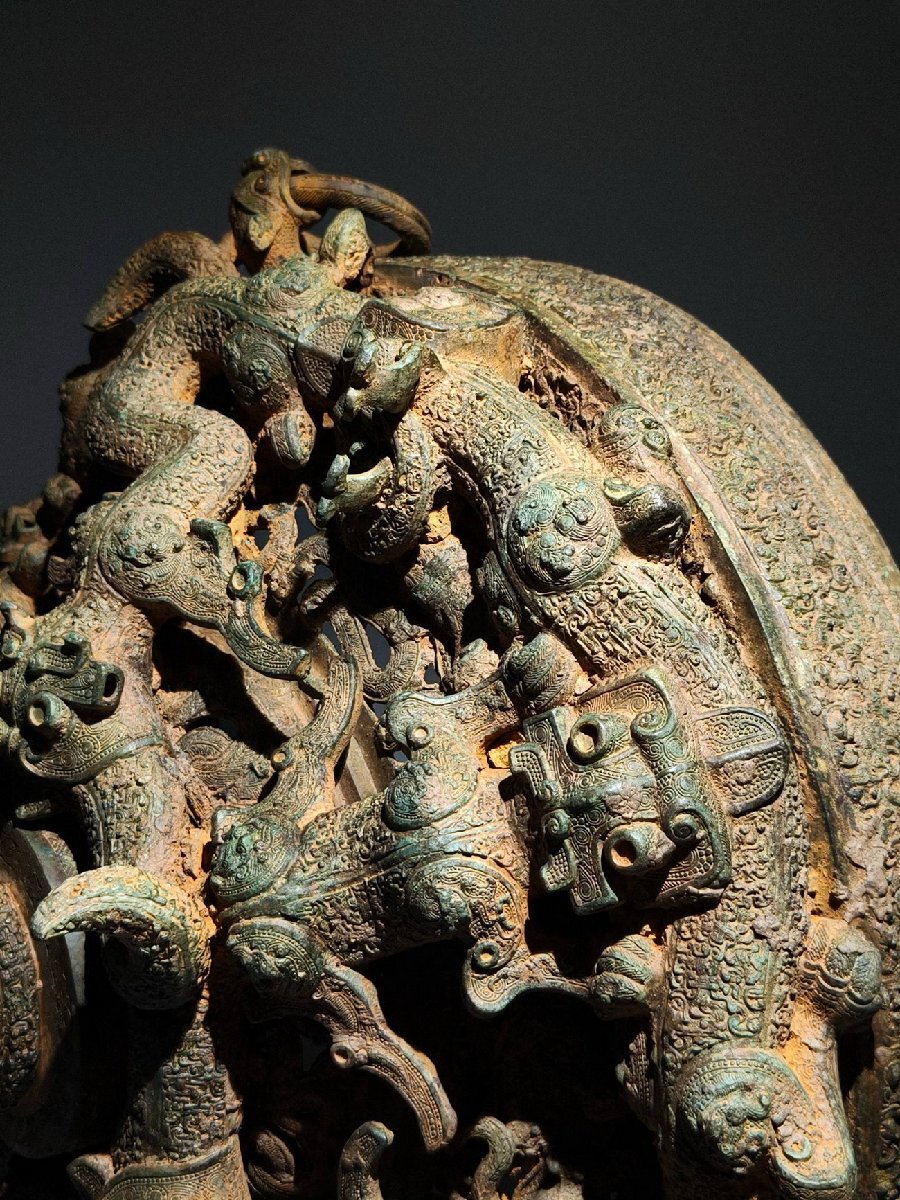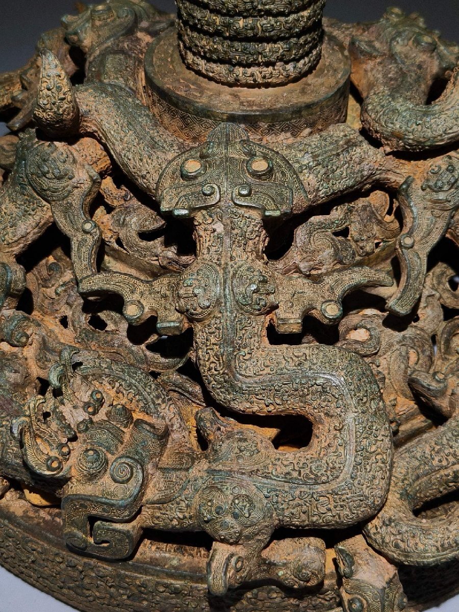 【清】某有名オークション購入 戦漢時代 青銅器 満工交龍文鼓座 材質保証 古置物 古擺件 古美術 時代コレクション7L9-ORE22