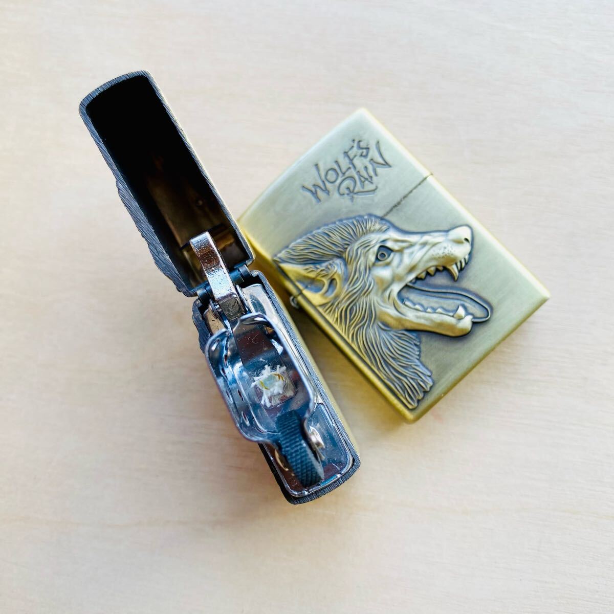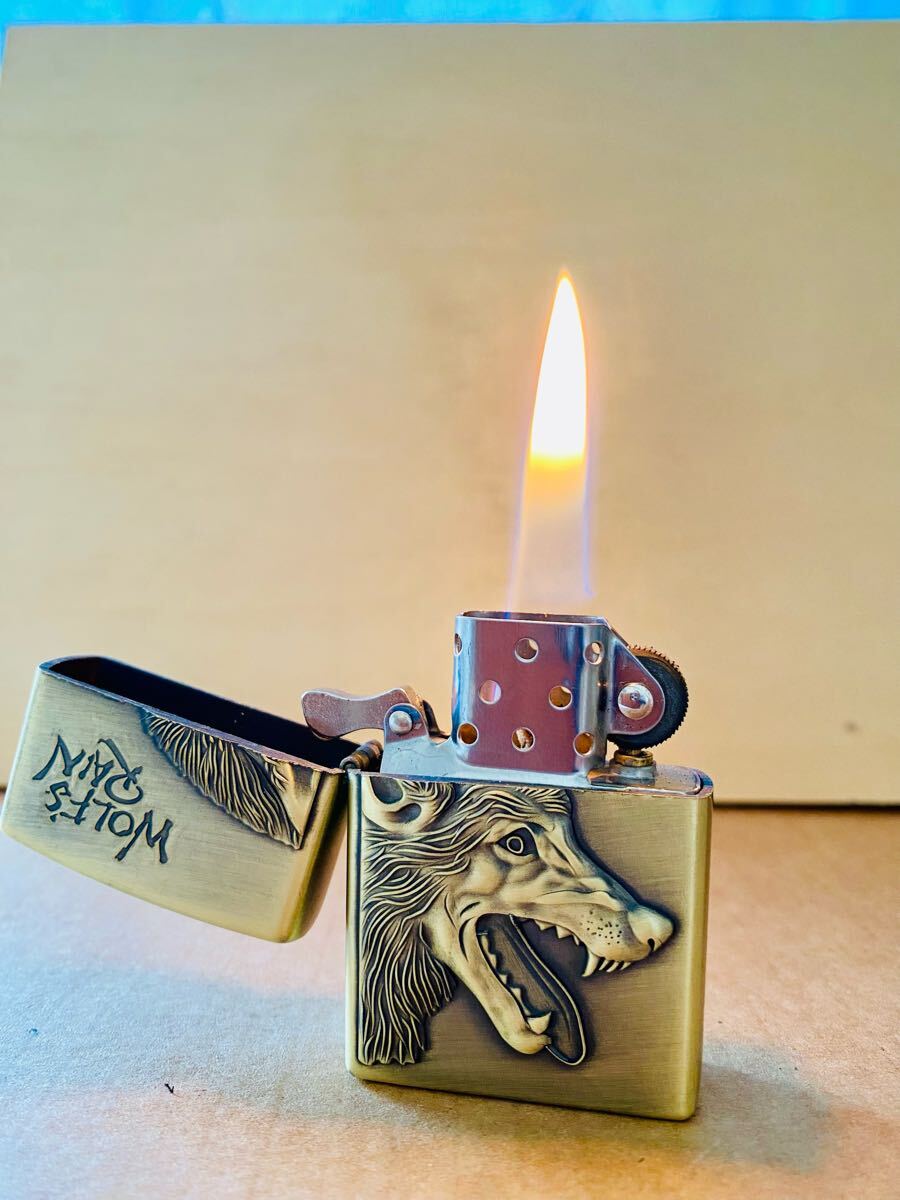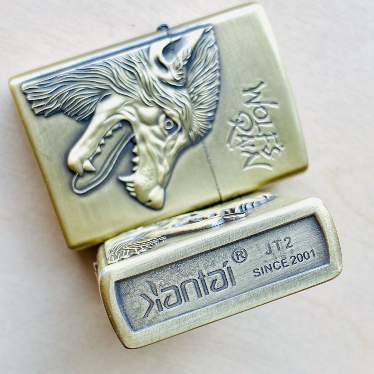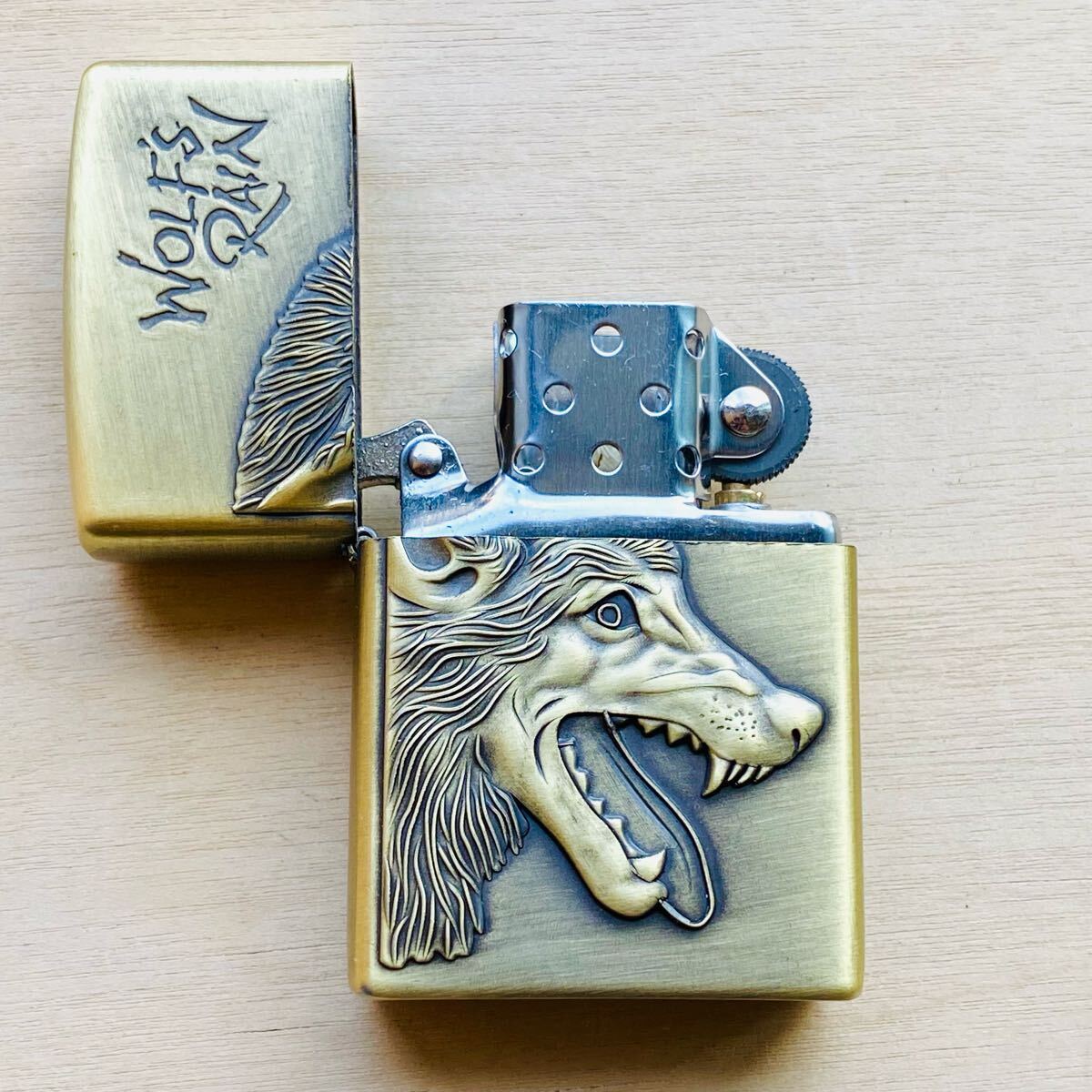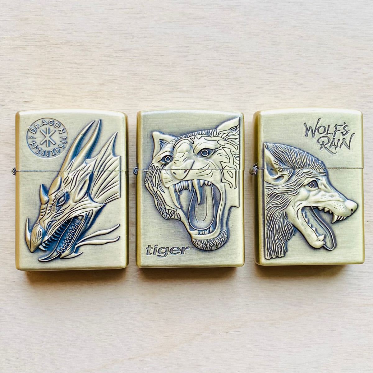 使いやすくて、デザインも個性的!ブラス風のヴィンテージ加工に、迫力のある立体ドラゴン・タイガー・ウルフのモチーフが印象的なオイルライターです。