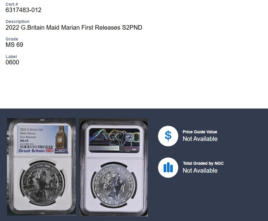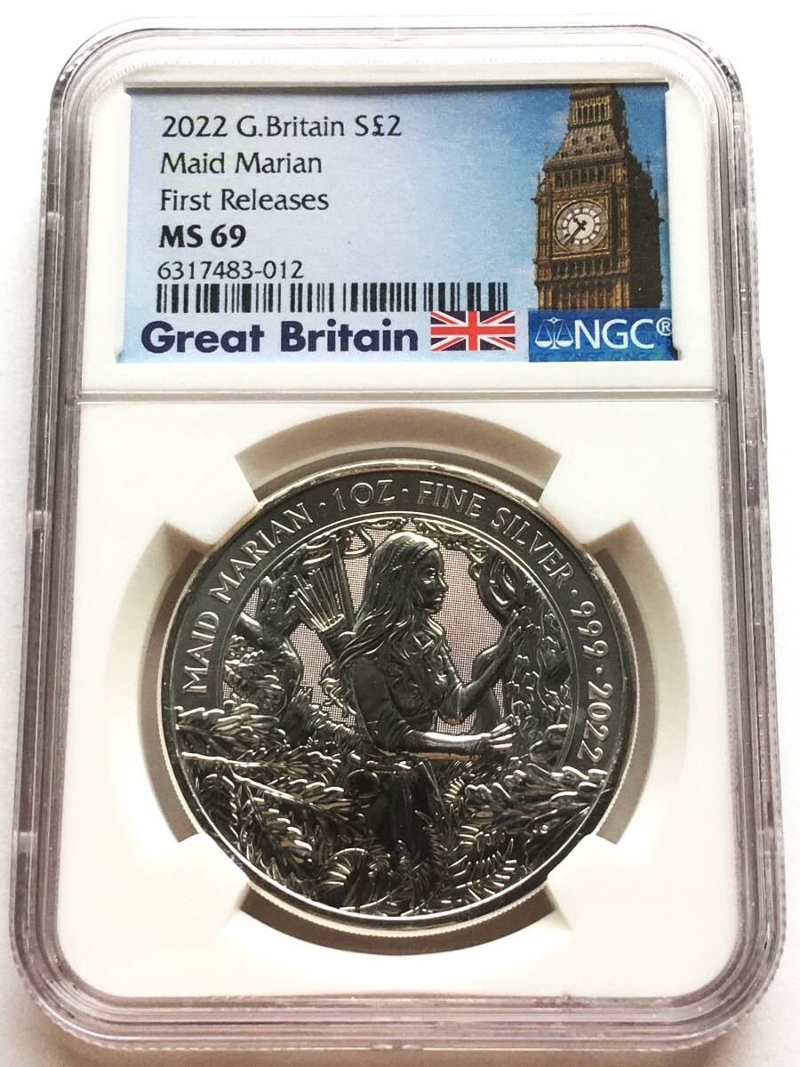 2022年◆イギリス G.Britain £2 銀貨 1oz 999 SILVER Maid Marian First Releases エリザベス2世 NGC MS69 英国モダンコイン◆