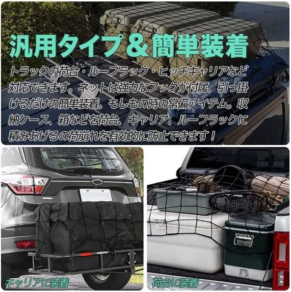 ヒッチキャリアやルーフキャリアで荷物を運搬する際の荷物落下防止用としてご利用いただけます。