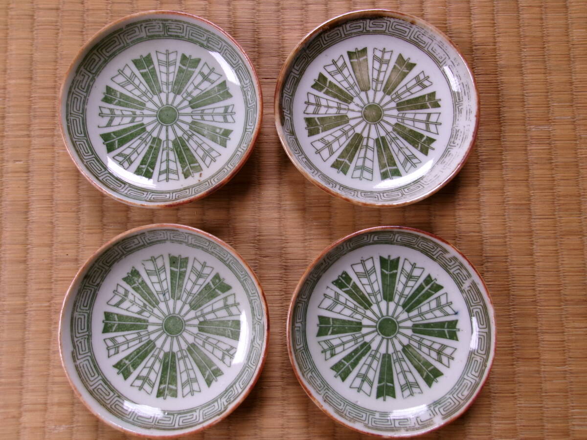 印版 手塩皿 陰陽矢羽 雷文囲み  4枚
