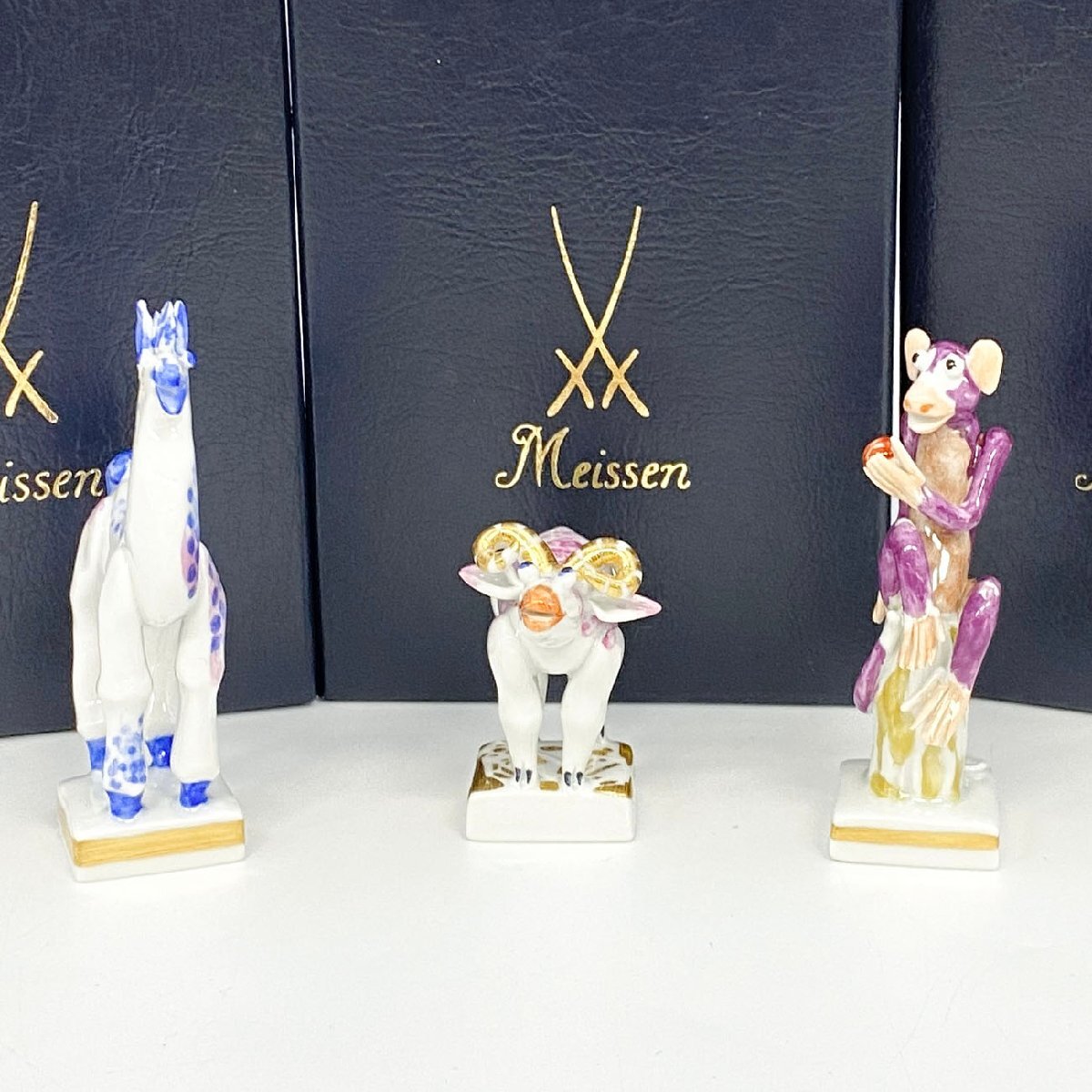 | 商品名 | Meissen マイセン 干支(うま) (ひつじ) (さる)手びねり フィギュリン ペーター・シュトラング 計3点 箱付 04-4267898 |
