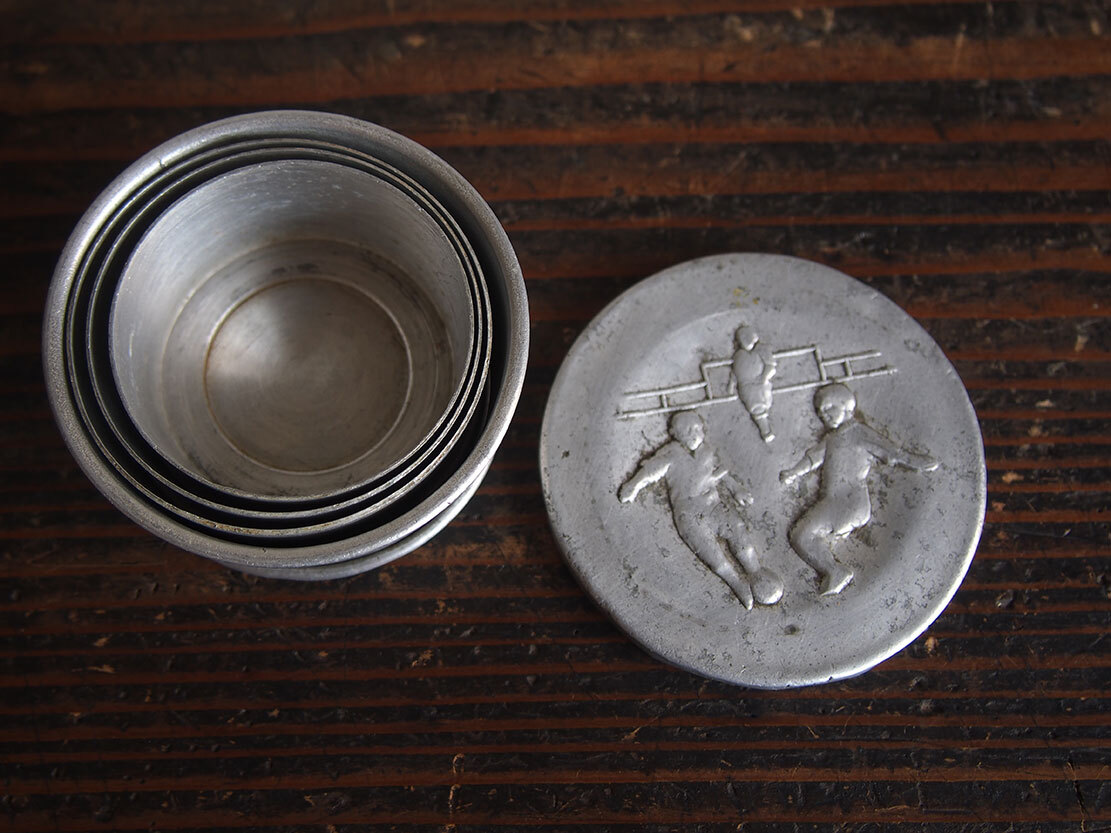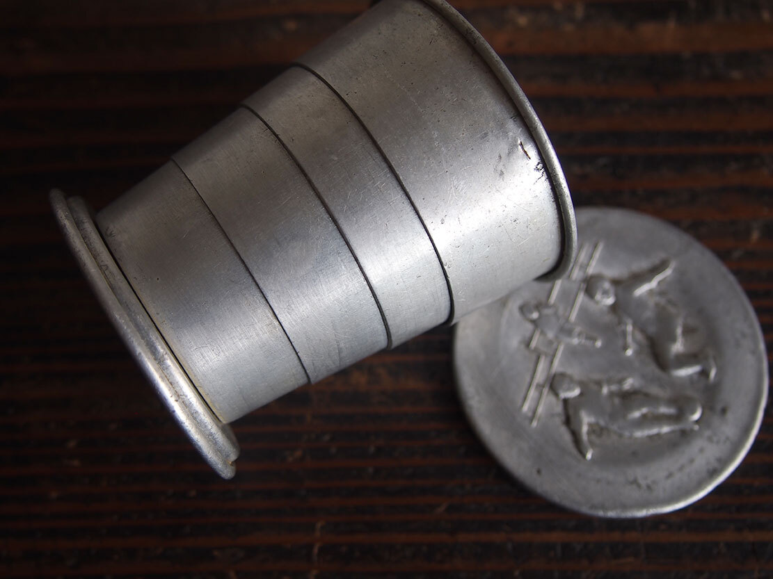 子供用 古い折りたたみ式アルミカップ 遠足 ピクニック 1930年代 ヨーロッパ アンティーク/K273 ●サイズ: 畳んだ状態直径7cm 広げて直径6.8cm×高7.8cm 約40g ●材質:アルミ ヨーロッパの蚤の市で入手。1930年代ぐらい?。たぶん子供用のカップでしょう、遠足などに持って行ったのだと想像します。蓋にはサッカーをする少年のレリーフ模様。傷や凹みなどあります、写真参照。コレクション、実用にもいかがでしょう。 詳細は写真でご確認いただけます。古い物だと言う事をご理解の上のご入札をお願い致します。材質及び年代の判定は困難な場合があります、差異についてはあらかじめご了承下さい。 ー ー ー ー ー ー ー ー ー 記載にない方法での発送はいたしません。 発送をお急ぎのお客様にはご希望に添えない場合があります。 ー ー ー ー ー ー ー ー ー ●その他 ヤフオクの小さな写真では商品を詳細にご覧頂く事ができません。リンク写真で質感ダメージ等の写真を数多くアップしています。必ず全部の写真がよく見える環境でご覧下さい。本商品は時代を経た古い物です。写真や説明で記載できないようなキズやシミ、古い物特有の臭いのある物もあります。できる限り詳細に説明するよう努力しておりますが、ご理解頂ける方、神経質で無い方、埃によるアレルギー等の無い方のご入札をお願いします。 必ず当店の自己紹介欄と落札後の落札通知をご覧下さい。 土曜日曜日は基本的には定休日です。メール、質問への回答は月曜日にいたします。 ご連絡は落札後48時間以内にお願いします。ご連絡が無い場合はお客様都合によるキャンセルとさせて頂きます。落札から1週間(土日祝日含む)経過してもご入金が無い場合も同様といたします。ご注意下さい。 特に評価「0」の新規のお客様、および 私とのお取り引きが初めてのお客様は遅れる事の無い様にお願い申し上げます。 評価の悪いお客様のご入札は取り消す場合があります。 入札の取り消しおよびキャンセルは固くお断りいたします。 自己紹介欄には急な連絡事項等も記載してあります、ご入札前に必ずご覧下さい。落札後には『落札通知』の内容も必ずご確認ください。 当オークションをご覧下さりありがとうございました。 Accept Paypal payment |