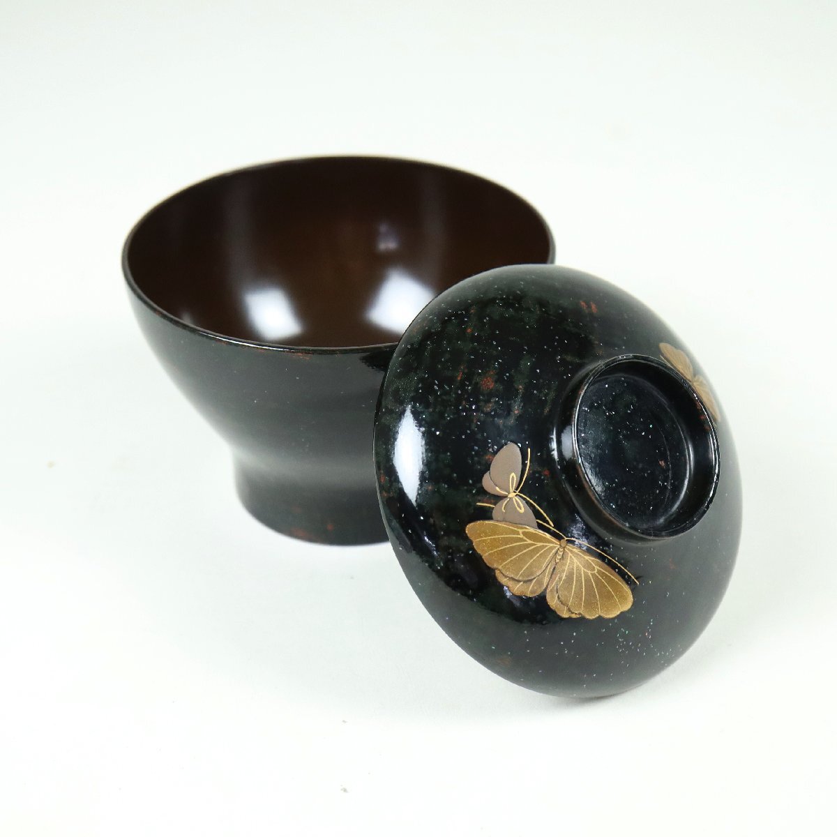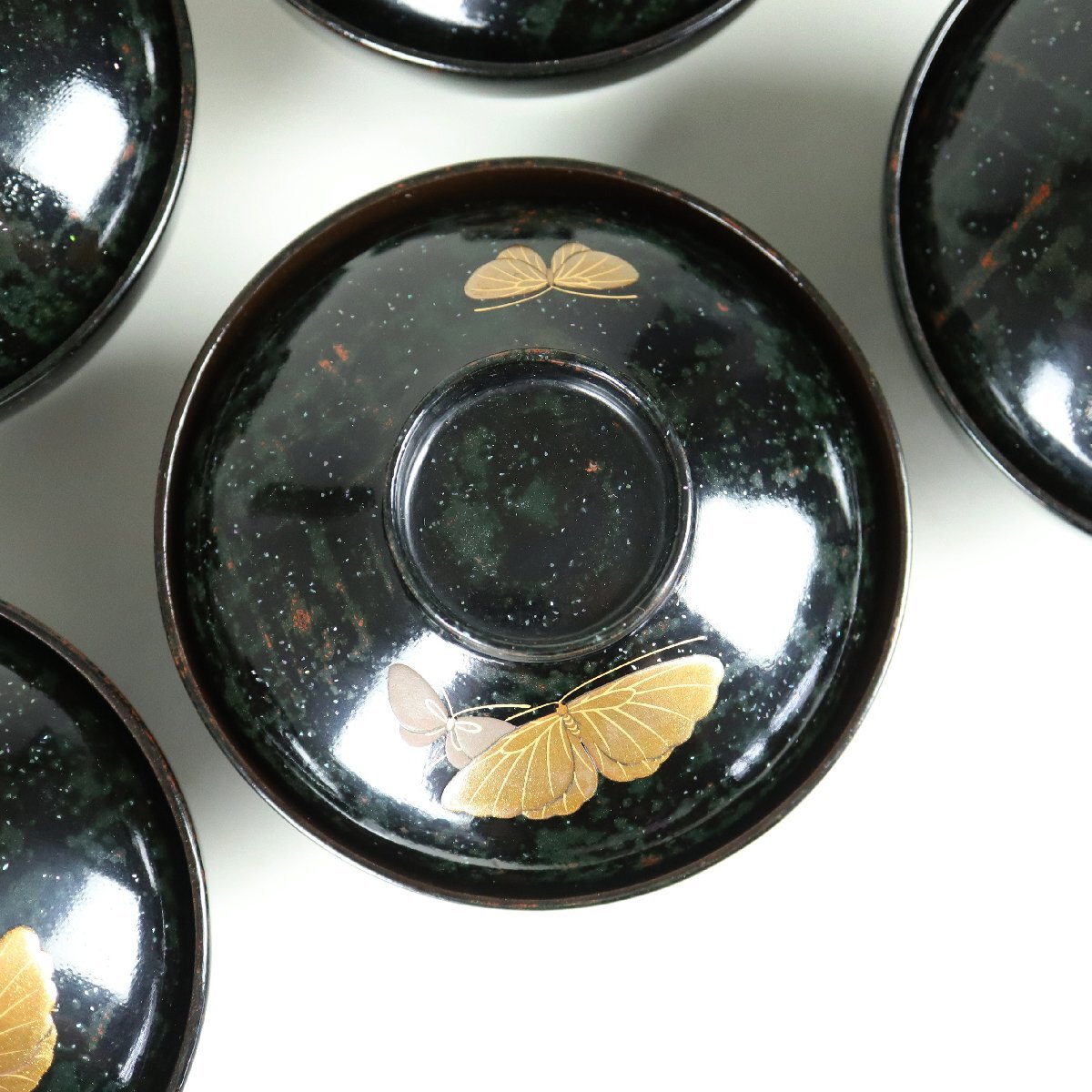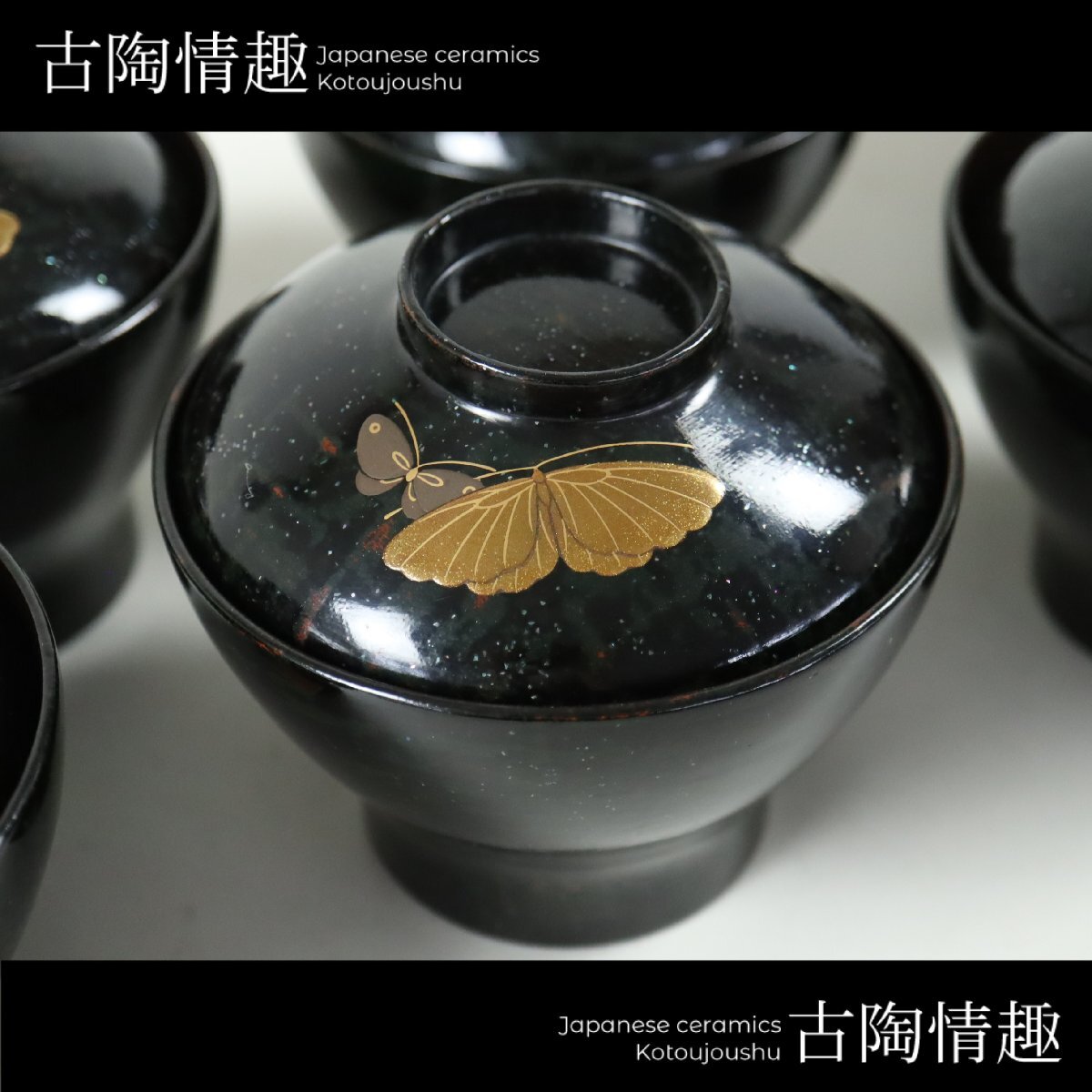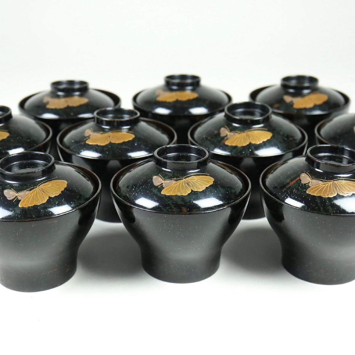 【古陶情趣】明治期~大正期 漆芸 螺鈿 蝶文 吸物椀 10客 料亭 懐石 ホテル 旅館 日本料理 居酒屋