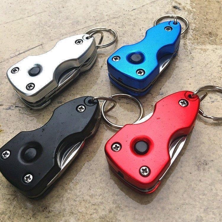 送料無料 多機能ミニ 折りたたみナイフ マルチツール アウトドア LED付き ゴールド