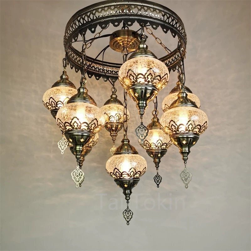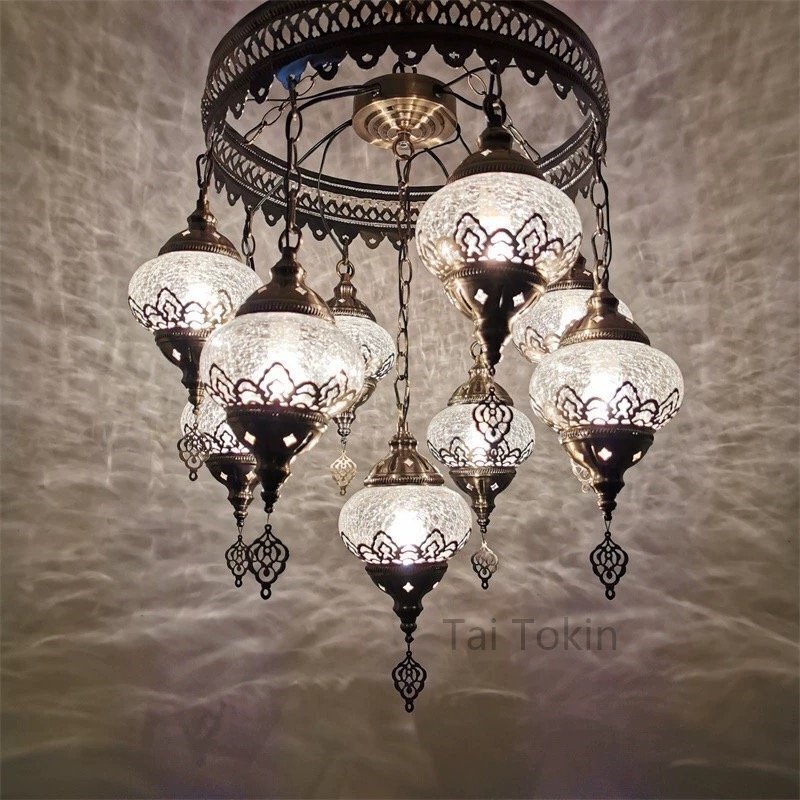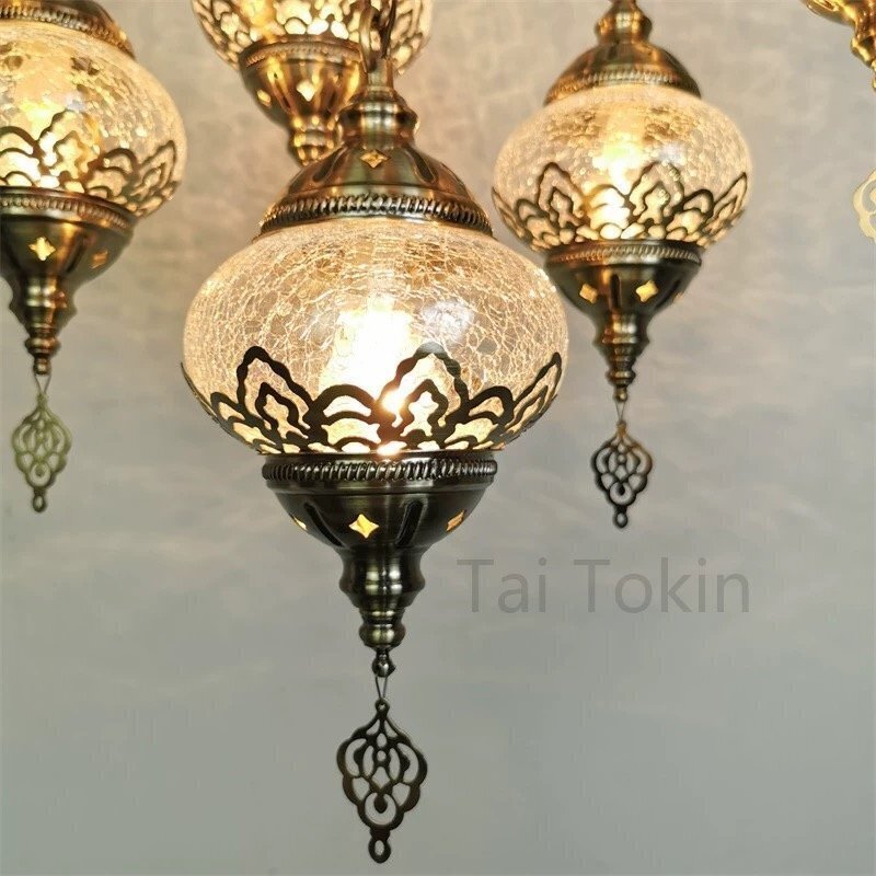 商品説明 商品説明 商品詳細状態:新品未使用カラー:画像参照【電球】:E12x9(電球は付属しておりません) 【素材】:ランプ:手作りクラックガラス / 本体: 鉄 表面銅メッキ 【ランプカバーサイズ】:幅14 cm x 高さ8 cm 【全体の横幅】:約56cm