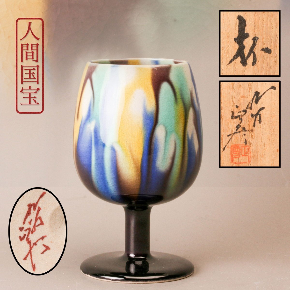 【SAG】人間国宝 三代 徳田八十吉(正彦) 杯 共箱 共布 栞 本物保証
