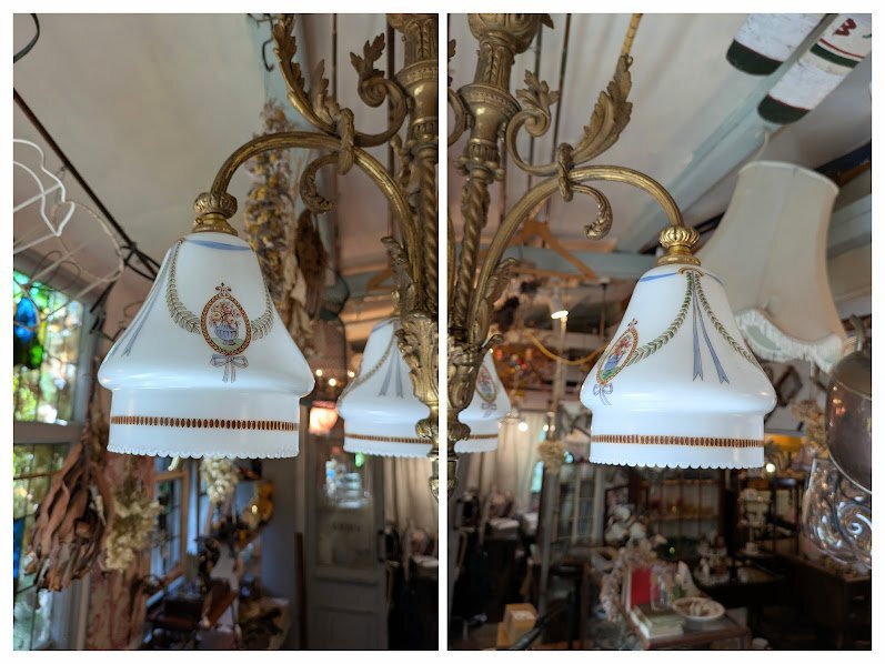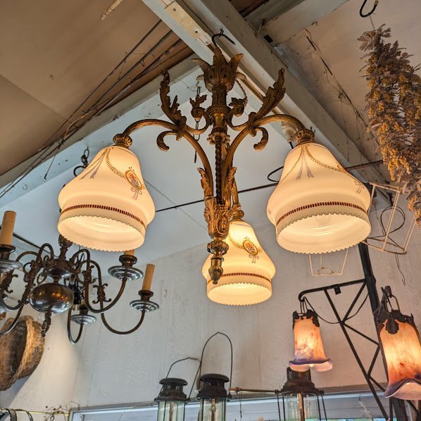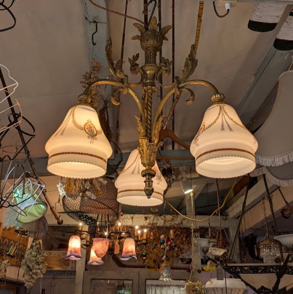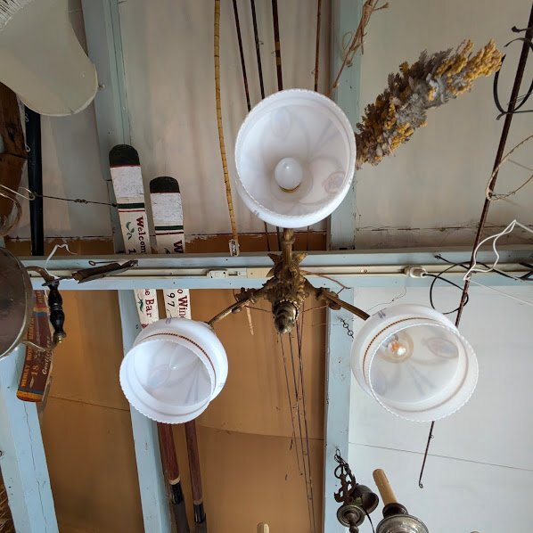 イギリスのアンティークショップで買い付けた、1930年代頃のチェコスロバキア製3灯シャンデリア【45-91
