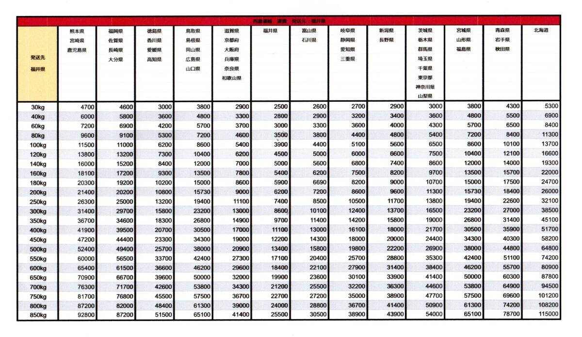 | 発送方法・送料(西濃運輸) |