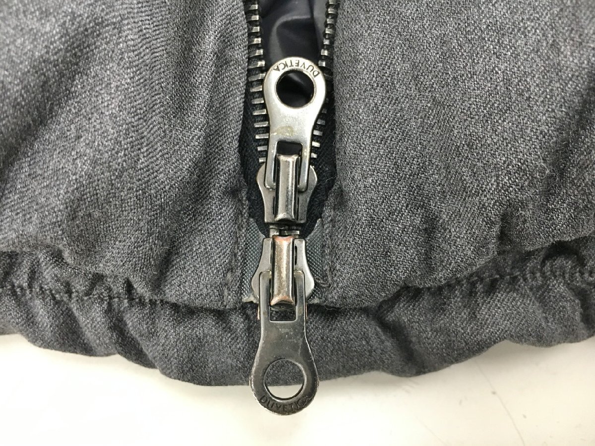 金具にスレ傷、変色があり、裾口に汚れがあります。