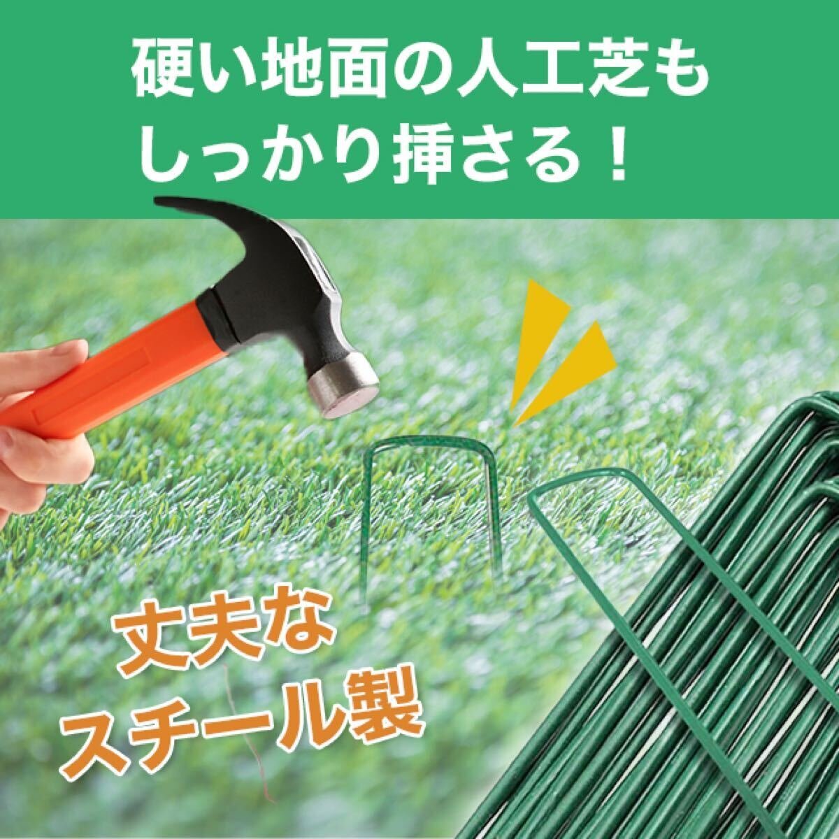 人工芝や防草シートを地面にしっかり固定、設置できるU字型の固定ピン100本セットです。