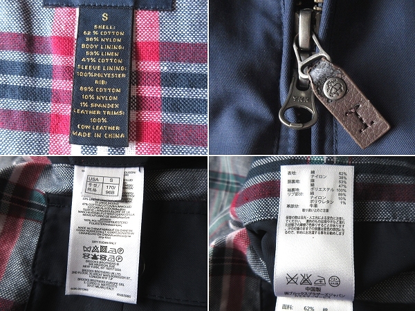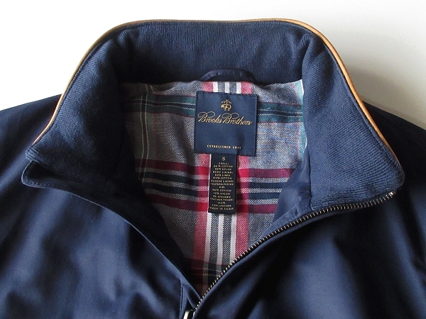 Brooks Brothers ブルックブラザーズ 裏地チェック 高密度コットンナイロン 羊ロゴ刺繍 ダブルジップ ブルゾン ジャケット S ネイビー 紺