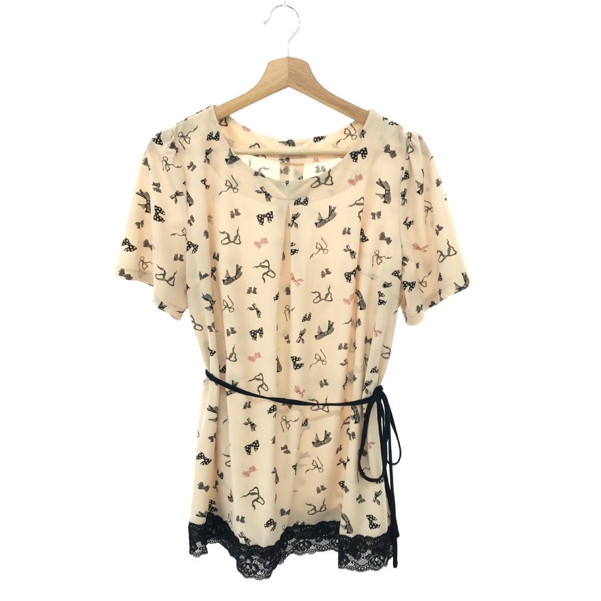 リボン柄ブラウス レース/半袖/総柄 ※素材は画像の素材タグをご確認ください。画像にない場合は素材タグが無く素材不明となります。 |