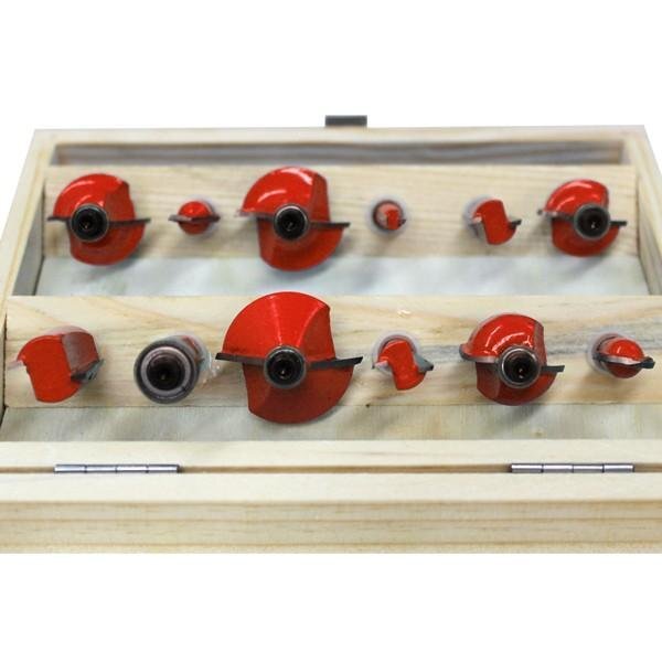 | ルータービット 12本セットです。 木材の溝切りや加工に最適! 用途に合わせたサイズでご使用ください。 専用の木箱に入っているので、大切に保管できます。 【商品仕様】 ビットサイズ一覧: DIA-12.7 R-6.3 DIA-22 R-6.3 DIA-12.7 ANGLE-14 DIA-32 ANGLE-45° DIA-12.7 DIA-16 DIA-22 R6.3 DIA-12 DIA-6 DIA-28.6 R9.5 DIA-12.7 ANGLE-90° DIA-25 R4 軸径:6.35mm ボーズ面(6.3R/9.5R) サジ面(6.3R) ヒョータン面(4R) 角面取り(45°) 目地払い(12.7mm) V溝(90°) U溝(6.3R) アリ錐(14°) ストレート(6mm/12mm/16mm) 【商品内容】 ビット ×12 六角レンチ ※入荷時期によってはカラーが青になる場合がございます。カラーは選べません。 (ルータービットセット トリマー ルータービット 電動ルーター 電動トリマー ルーターセット 超硬ルータービット ドリル ミニドリル 木工 工具 電動工具 作業 オプション 人気 おすすめ 安い)