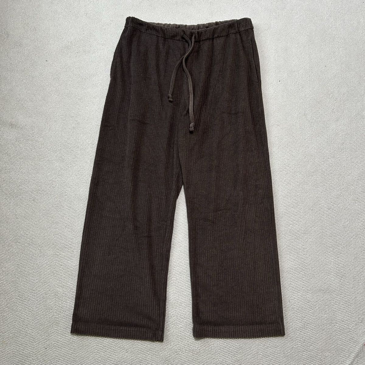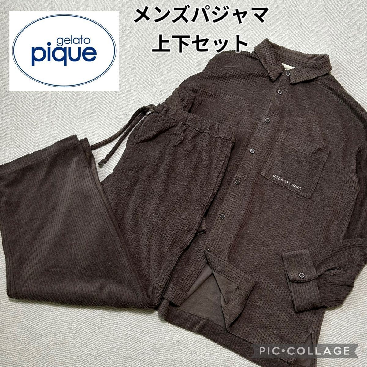 リブ素材のブラウンメンズパジャマ/ルームウェア/ナイトウェア 上下セット、ポケット付きで快適な着心地。