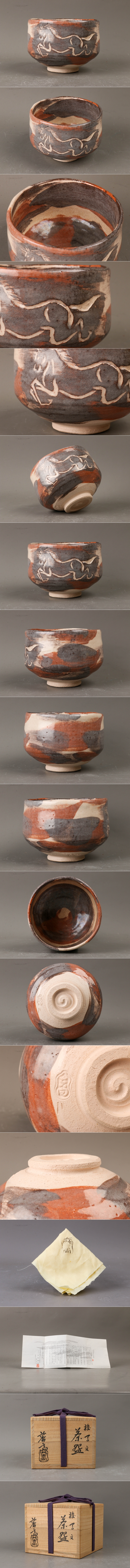 【SAG】七世 吉向松月(吉向蕃斎) 駿馬文 茶碗 共箱 共布 栞 茶道具 本物保証