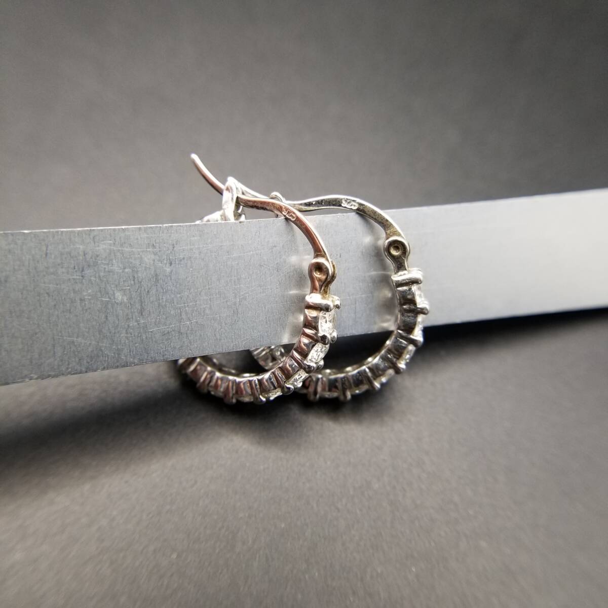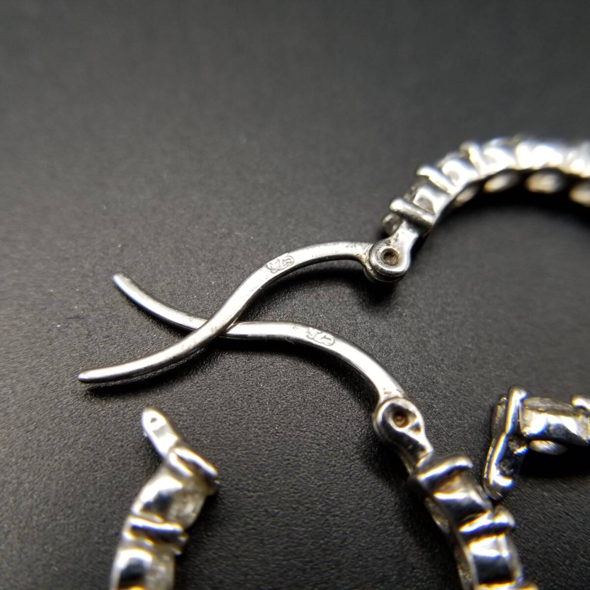 キュービックジルコニア インレイ 煌めき 925 シルバー ヴィンテージ フープ ピアス 銀 小ぶり ゴージャス エレガント Y25-G