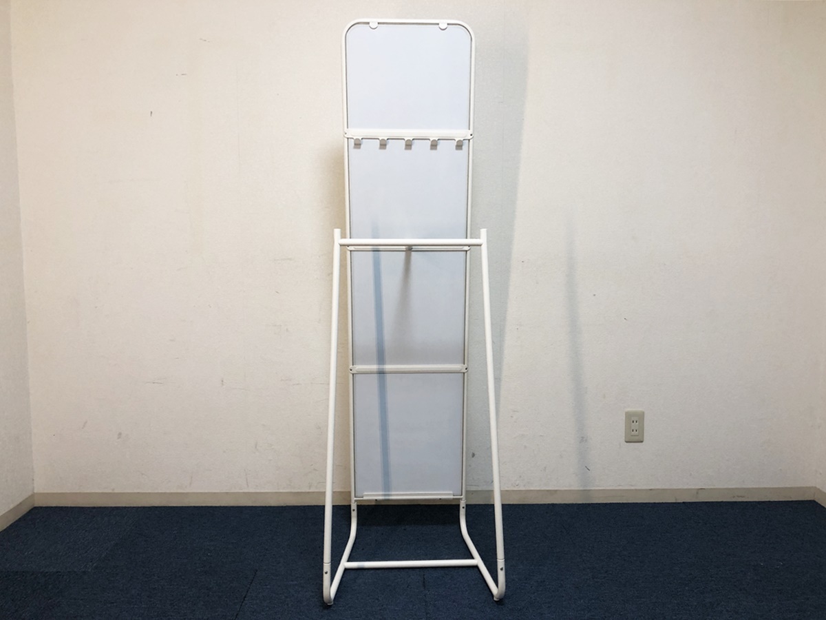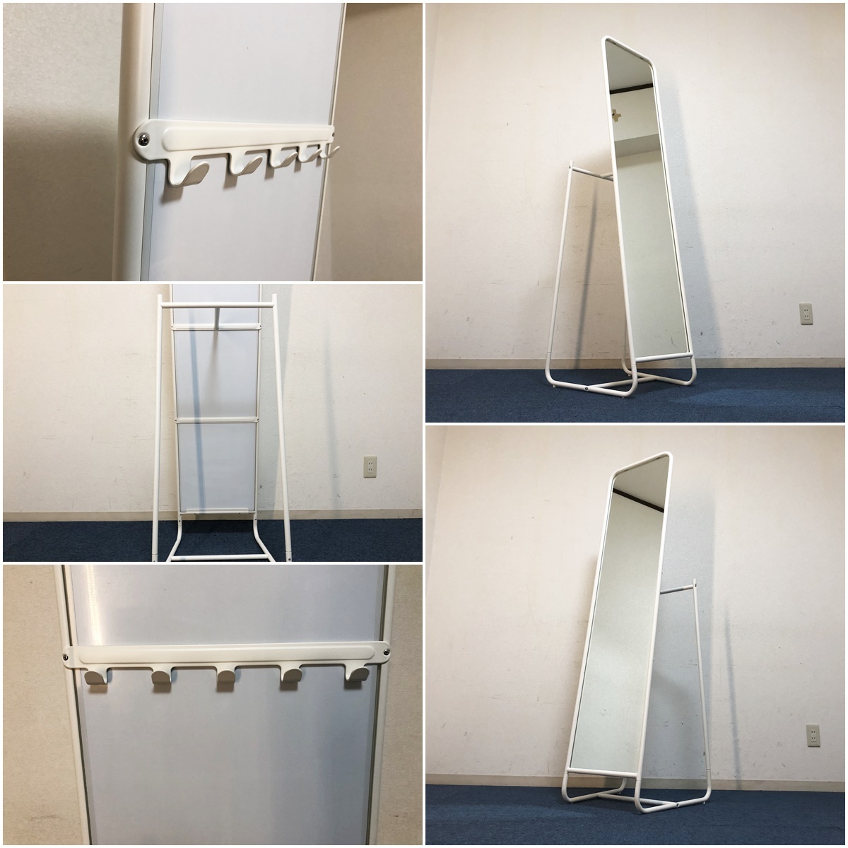 IKEA スタンドミラー KNAPPER ホワイト鏡 背面フック・レール付 クナッペル 大型姿見 【商品詳細】 ■本体サイズ:幅480×奥行530×高さ1600mm ■ミラーサイズ:350×1470mm ■素材:スチール・エポキシ/ポリエステル粉体塗装 ※採寸は目安程度でお考え頂き多少の誤差は了承願います。 ■主観になりますがキレイです、個人差が御座います画像にて判断願います。 ■安全な飛散防止フィルムを貼ってあります、万が一割れても飛び散りません。 ■ミラーの裏側にフックとハンガーレールが付いています。 ■コートやジャケットから、アクセサリーやバッグまで、1カ所にまとめて収納できます。 ■メーカー:IKEA(イケア)大型スタンドミラー ■品名/型番:KNAPPER(クナッペル) ■デザイナー:N Cortolezzis/D Wahl ■カラー:ホワイト ■組立品(購入者様にて組立)工具は付属しません。 ■擦れ・小傷は御座います、気になさる方はご遠慮ください。 ■写真に掲載しております物以外の付属品は御座いません。 ■他気になる事など御座いましたらお気軽に質問下さい。 (注意) 環境、モニター画面等により色合いが異なります。 【商品管理番号】278 |