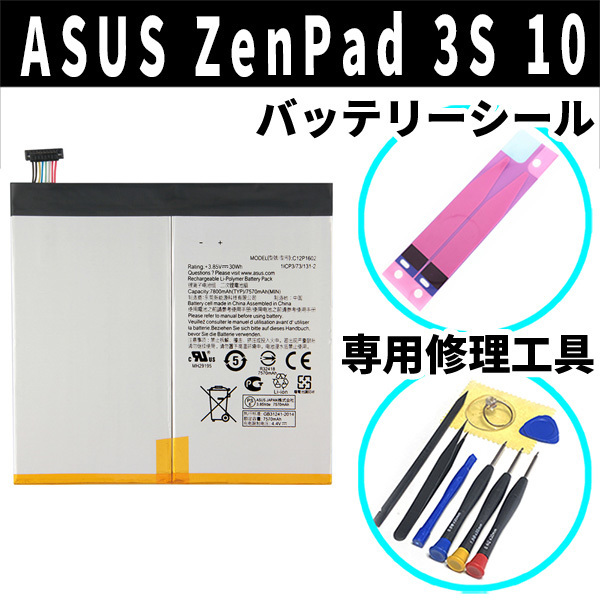 ★ASUS ZenPad 3S 10 バッテリー交換 Z500KL C12P1602 電池パック交換キット battery repair 電池交換専用両面テープ 修理工具付セット★