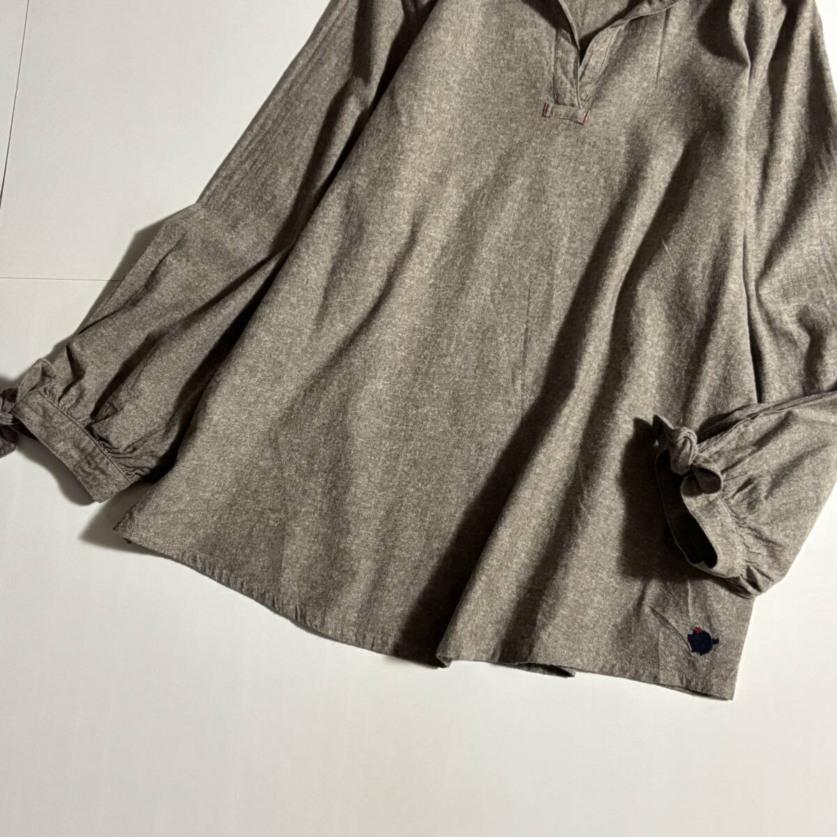 ドラッグストアーズ ゆったりサイズF // グレージュ系 ブタさんの刺しゅう入り プルオーバーブラウス ②