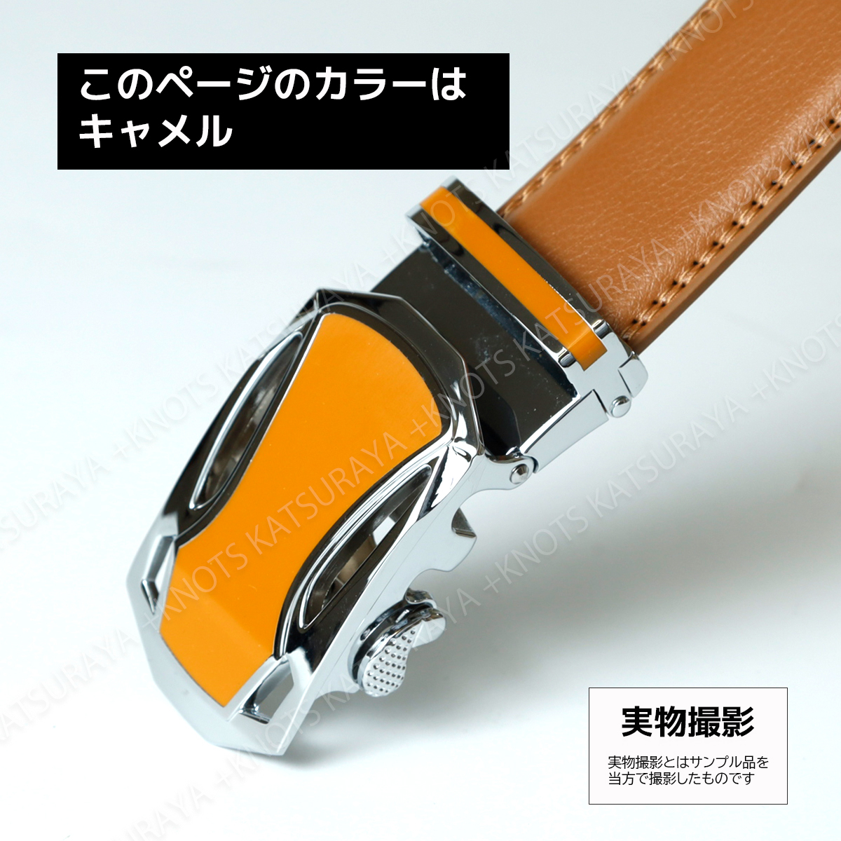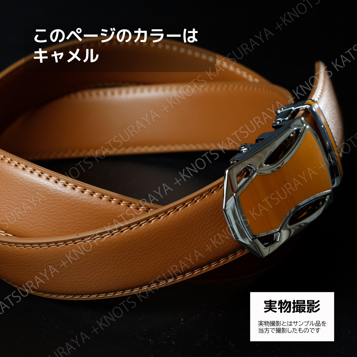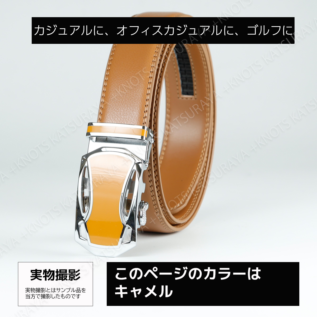 本革 メンズ ベルト★キャメル★ゴルフ レザー 穴無し 自動 オートロックベルト カジュアル ビジネス スーツ デニムチノパン調整調節a112