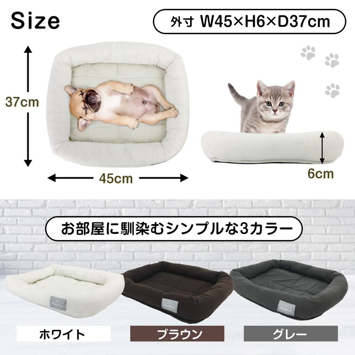 商品紹介 ・季節を問わずオールシーズンで使用できます。 ・洗濯可能で、ふちはしっかりとしていますので、あご乗せ枕としても使用できます。 ・底面には滑り止め付き。 使用上の注意 ・この商品はペット用です。その他の目的には使用しないでください。 ・火気や暖房器具のそばに置いたり近づけたりしないでください。火災の原因になります ・生地の性質上、色落ち、色移りすることがありますのでご注意ください ・破棄する場合はお住まいの自治体の指導に従ってください 原材料・成分 表生地:ポリエステル100% 底中素材:ウレタン 詰め物:ポリエステル100% 底生地:ポリエステル100% ●この商品はメーカー取寄せ品です ●この商品は複数店舗と在庫を共有しています