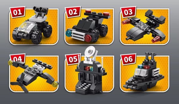航空母艦、恐竜、工事トラック、特殊警察ヘリ、キャノン戦車、車両迫撃砲、ミサイル車両、装甲軍用車両、航空車両、お城、SWAT(スワット)、蒸気機関車、イルカ、メカ、救急ヘリ、オスプレイヘリなど、様々なシリーズ展開をしております。