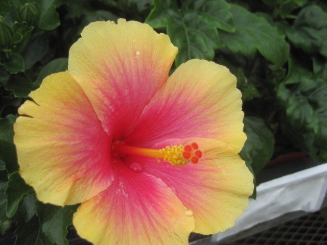 夏の花、ハイビスカス。次々に花を咲かせ、花色もバラエティに富んでいます。