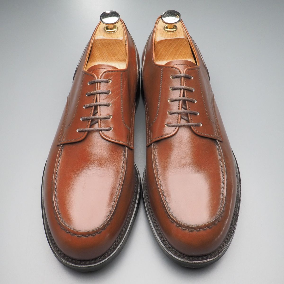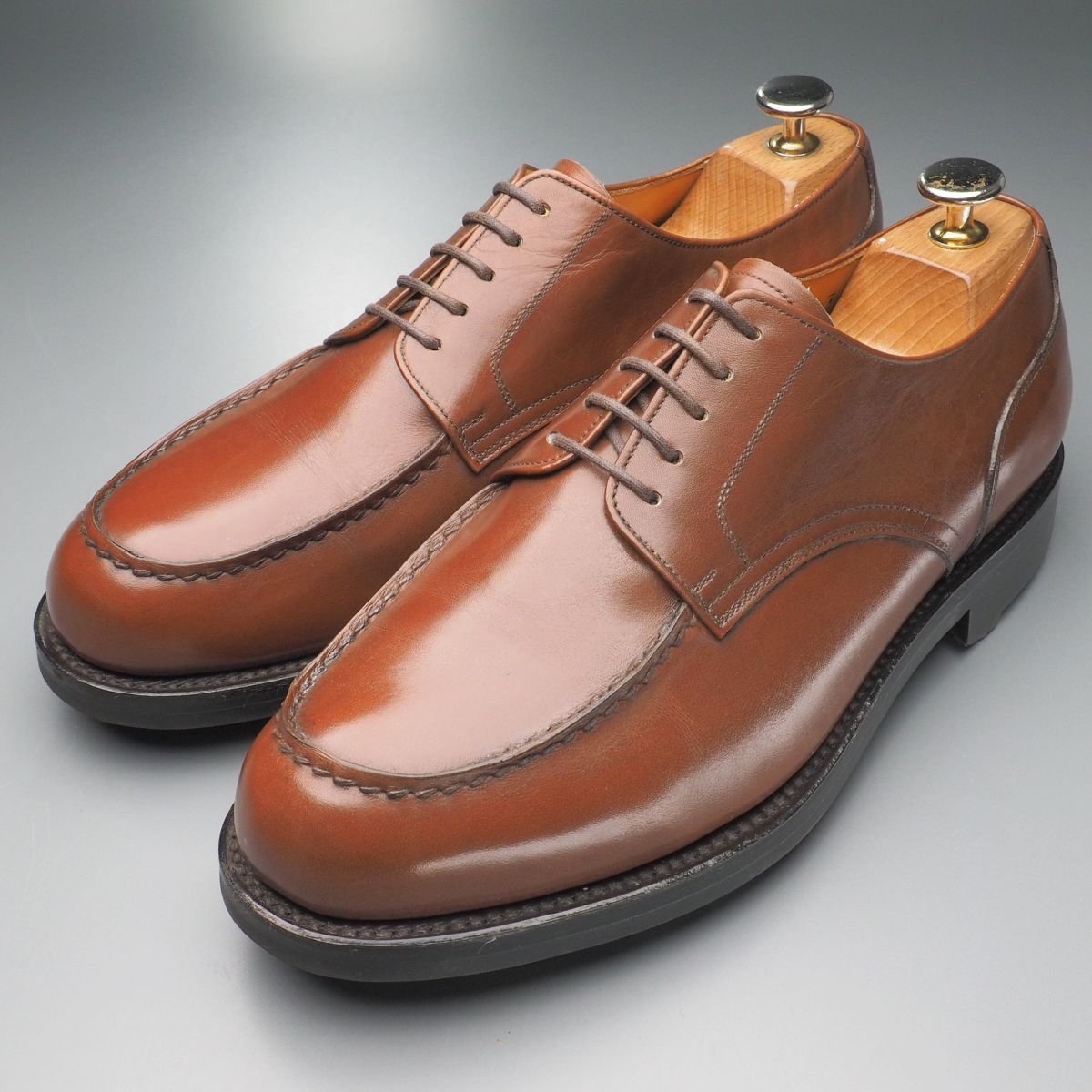 高級紳士靴のセレクトショップ「トレーディングポスト/Trading Post」の一足です。 しなやかでハリのある茶のスムース革をアッパーに用いた5アイレットのエプロンダービーモデル。 アウトソールは優れたグリップ力を持つリッジウェイソールが装着されたダブルソール仕様、底付けには360度グッドイヤーウェルテッド製法を採用し、堅牢に形作られております。 製法:グッドイヤーウェルテッド アウトソール:ラバー ライニング:レザー ※撮影用のシューキーパーは付属致しません。 ※本物の商品ですのでご安心の上オークションをお楽しみ下さい。 ※タイトル頭の英数字は弊社の管理番号です。 ※ほかにも多数の商品を出品しています。 ※同梱に関しましては「まとめて取引」でのみ対応可能です、その他の方法での同梱対応は出来かねます。 (※商品の特性上、同梱対応出来ない商品もございますので予めご了承下さい。) |
