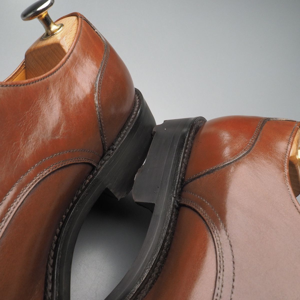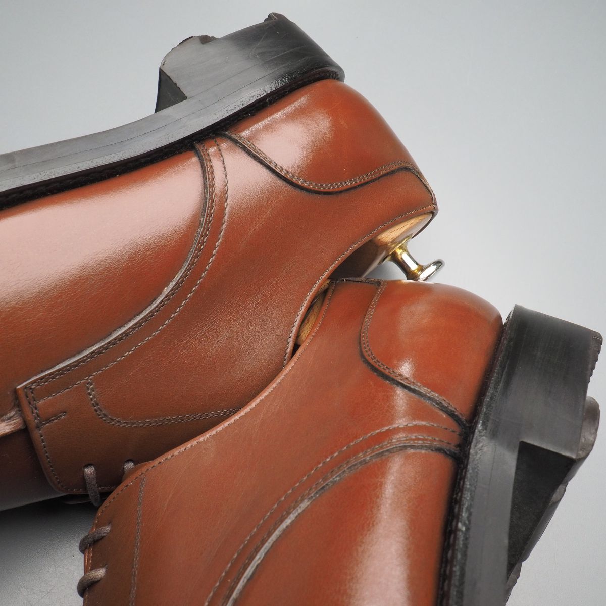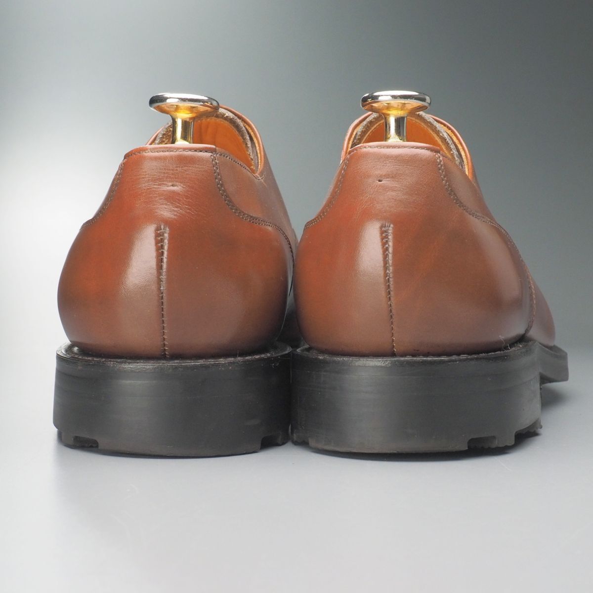 【コンディション詳細】 アッパーのシワ、薄い擦れキズや色ムラ、インソールやライニングの薄い擦れや汚れが見られますが、その他気になるようなダメージ等なくこれからも気持ちよくご愛用いただけます。 アウトソールの減りはトゥ・ヒール共に1~2mm程度です。 |
