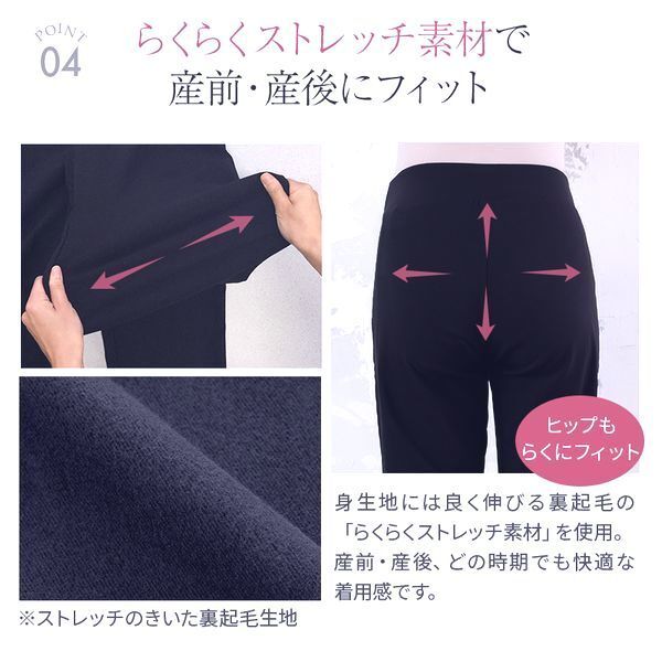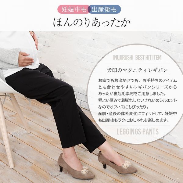 犬印 L ながく使えるマタニティ 裏起毛 楽々ストレッチ素材で綺麗テーパードレギパン ネイビー