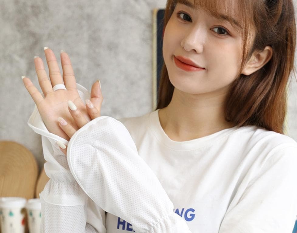 このアームカバーは、指先から手の甲までしっかりとカバーできるデザインで、夏でも快適に着用できます(^^)/