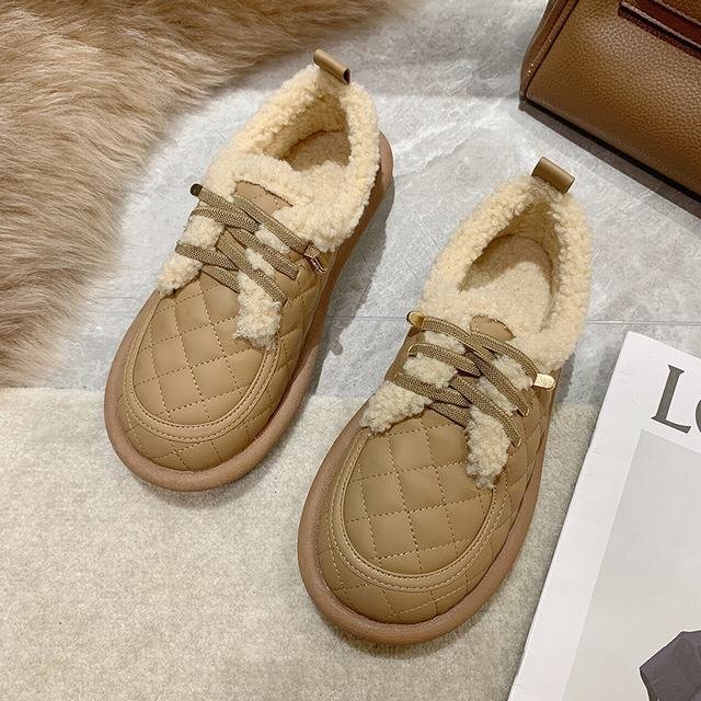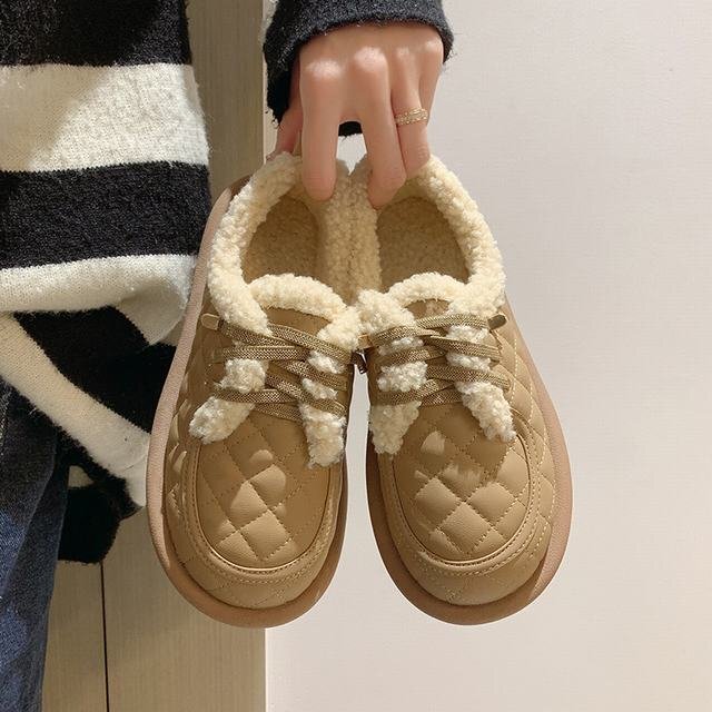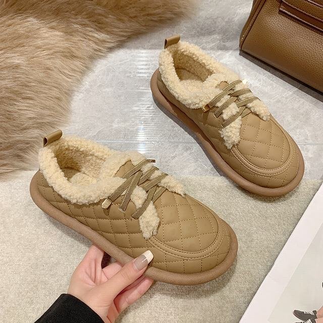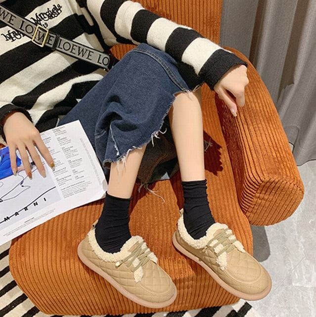 モカシン ムートンパンプス ボアシューズ キルディング ファーシューズ レディース 裏起毛 フラットシューズ 防寒 靴 カーキ24.5 cm