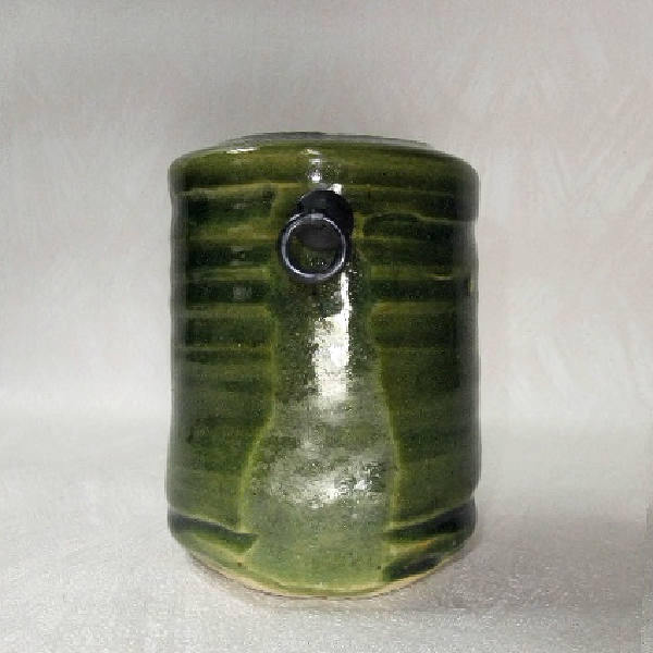 【睦】織部 掛花入 窪み「旅まくら」 在銘 逸品 未使用 共箱■