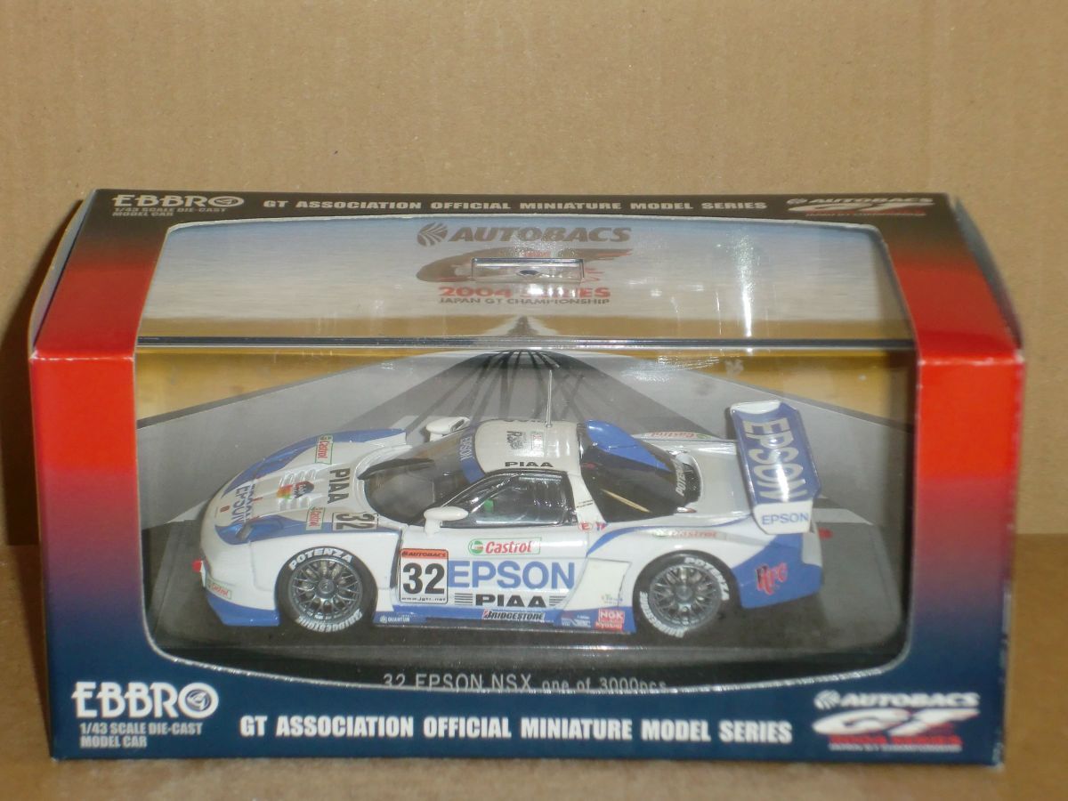 ●1/43 EBBRO JGTC 2004 EPSON NSX No.32 白/青です。箱に少し傷みがありますので、ご了承の上入札下さい。商品の状況は写真でご判断の 上、ノ-クレ-ム・ノ-リタ-ンでお願いします。保証はできませんが、定形外郵便での発送も可能です。