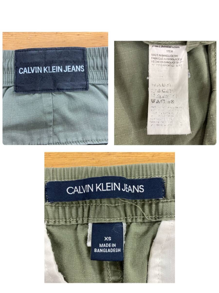 2O2976-U-N◆CALVIN KLEIN JEANS カルバンクラインジーンズ リップストップ ミリタリー ジップイージーパンツ ジョガー◆sizeXS 緑 カーキ