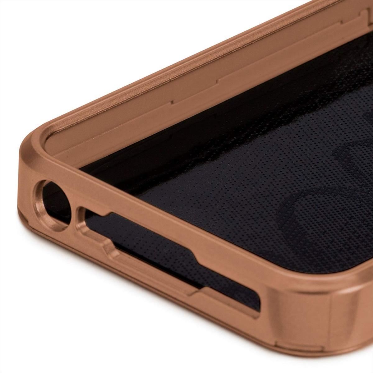 ケースの構造は、 側面カバー部分に iPhone を装着し、輝くインレイ入りの背面プレート部分を嵌めこむで装着完了となる、スリム ツーピースデザインを採用。