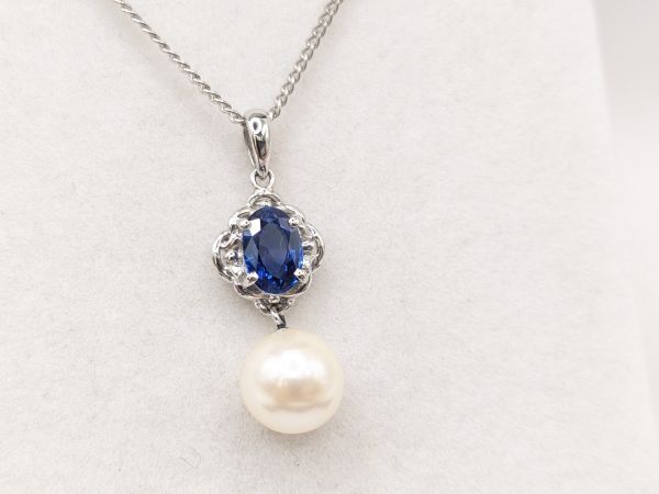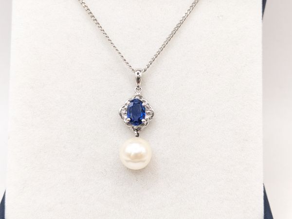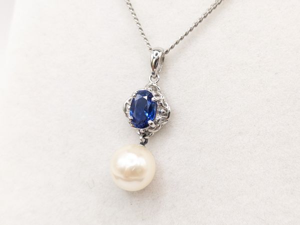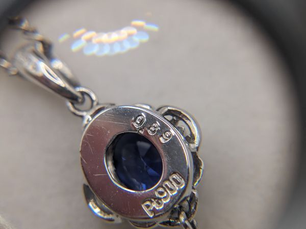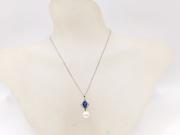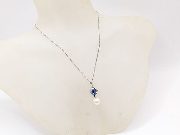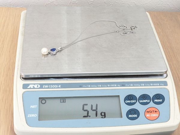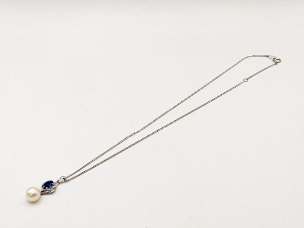 【美品】PT900/PT850 天然サファイヤ 0.89ct アコヤ真珠 ネックレス 約5.4g パール直径約8mm (M9393)