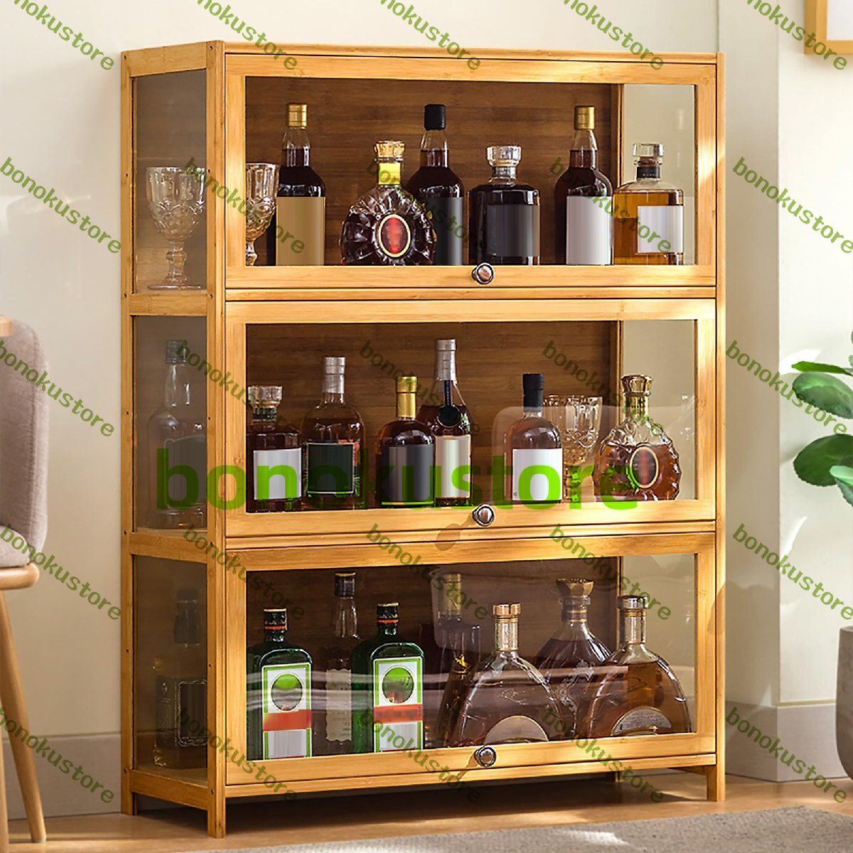 高品質の竹材素材:酒棚 ディスプレイ透明なキャビネットドアのデザインの竹材で作られており、ワインコレクションの展示に便利であるだけでなく、効果的に防塵にも役立ち、頑丈な構造により長期安定した保管が可能です。