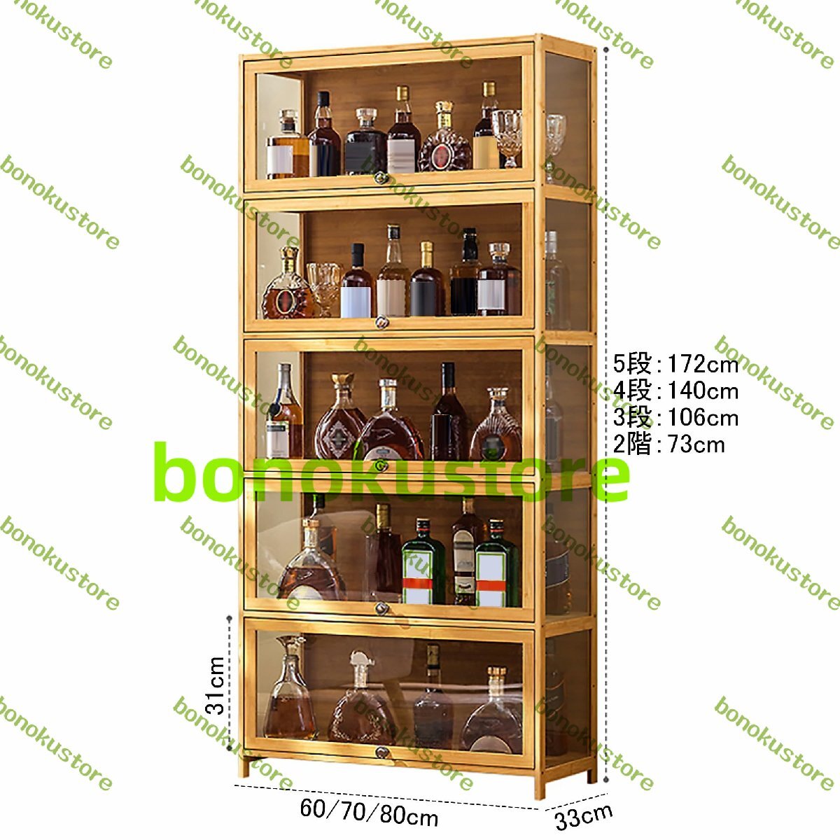 友人や家族とワインを楽しむときに、お気に入りのボトルやグラスに簡単にアクセスできるウイスキー 棚。キャビネット上部にフルーツやお菓子、花瓶などを置くと、温かみのあるリラックス空間が生まれます。製品名: ワインバーキャビネット/酒棚 ディスプレイ/自立式ワインラック/ウイスキーラック製品素材: 竹+アクリル製品の色: 木の色製品の長さ: 60/70/80cm製品幅: 33cm身長:73/106/140/172cm該当する機会: バー、リビングルーム、ダイニングルーム、キッチン、書斎パッケージ内容バーキャビネット×1