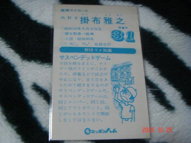 激レア ニッポンハム ソーセージ・カード (掛布/阪神) A 美品
