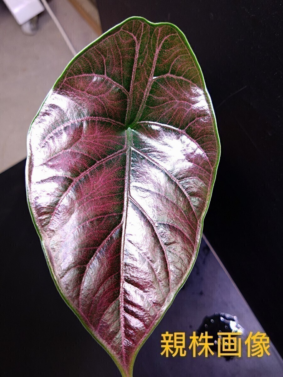 ワインレッドが葉全体に広がる綺麗なアロカシアです。