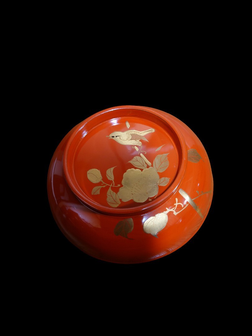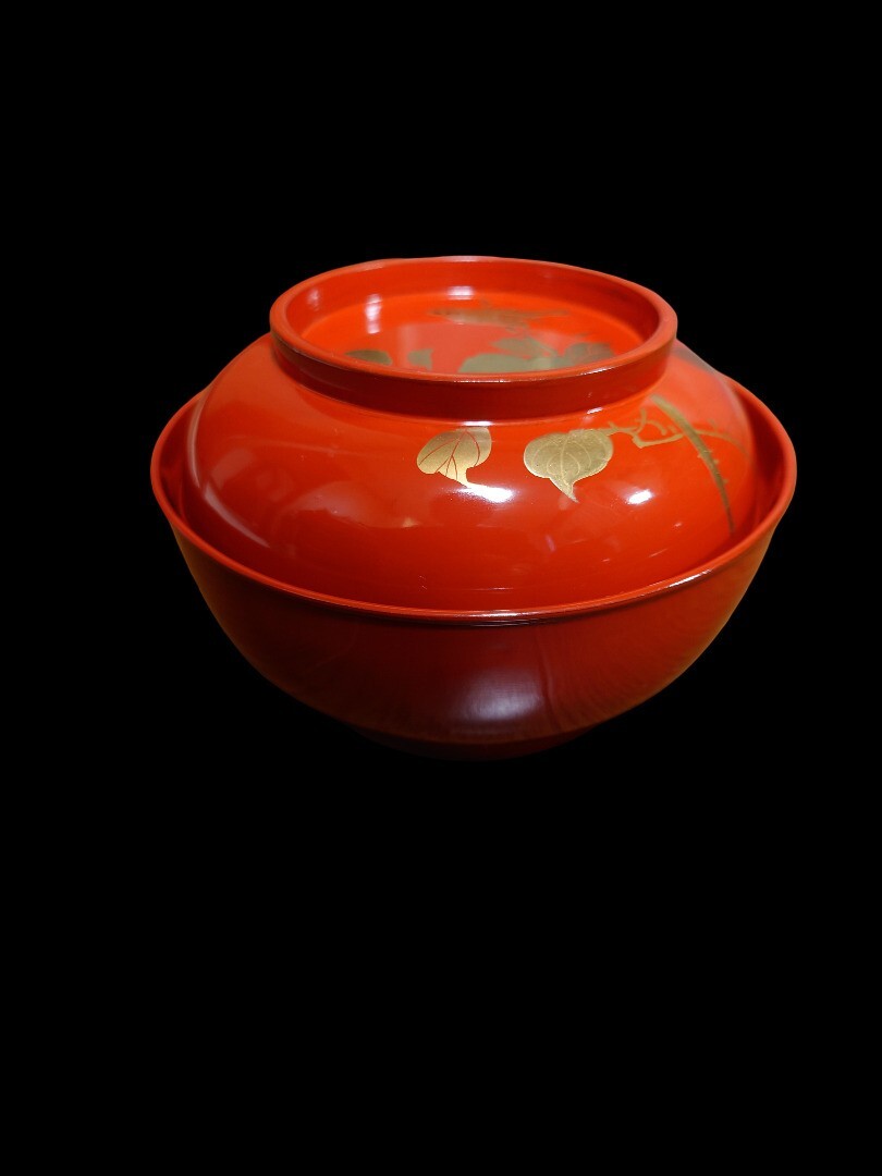 大正10年作の朱塗蒔絵碗20客となります。蔵出し品の中で最も大切に保管されていたもののため、他の商品と比較しても保存状態は良好です。