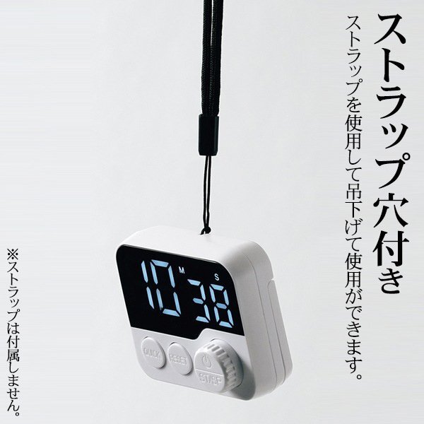 | ※電池は付属しません。別途ご用意ください。 ※ストラップは付属しません。 ※本品は防水・防滴ではありません。 ※数字が表示される面(黒い画面)は保護フィルムが貼られてますので、使用前に剥がしてください。 ※電池が消耗すると数字の表示が暗くなったりチラつきが発生します。新しい電池に交換してください。 ※音量調節はできません。ONかOFF(ミュート)のみ可能です。 ※電源OFFボタンはありません。操作せずに約1分間経過すると、自動でOFFになります。 | |