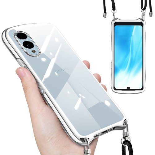 arrows We2 F-52E 用 ケース クリア ショルダー ストラップ付き arrows we2 FCG02 用 カバー 透明 肩掛け 縄掛け 斜めかけ TPU 耐衝撃 全面保護 薄型 韓国 可愛い ケース シルバー 512