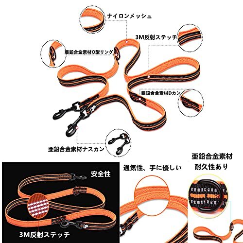 「cocomall 7in1多機能リード 日本授権店 TRUE LOVE専門販売店 1本で色々使える7in1多機能 犬用リード ショルダーリード」▼▼(商品説明)・オレンジ M TR11・・Size:MColor:オレンジ・【※偽物にご注意を:cocomall製品はcocomallのみが正規販売店ですのでご注意ください。】【1本で色々使える7in1多機能リード】ナスカンをリード本体のDカン、O型リングに接続することで、110cm/135cm/175cmの長さに調節可能。ショルダーリードとして、ダブルリードとして、普通リードとして、ポール止めとして、2頭用リードとして。大型犬や小型犬、飼い主様の身長などに対応できるよう長さ調節できるようになります。・【素材】人間用のスポーツ用品と同じく軽いナイロン素材でできており、使っていて疲れにくいつくりになってます。大切なわんちゃんに安心して使えるようしっかりとした縫製となっています。・【耐久性】耐衝撃性に優れた亜鉛合金素材の留め具は高い引張り強さ、耐腐食性と硬度がある。リードは耐久性があり、ステンレススチールを使用しておりサビにくいつくりになってます。・【安全性】ナイロン素材に3M反射ステッチを入れて、3M反射ステッチで夜道の散歩も安心、機能面でもおすすめです。・【洗濯できる】水に強