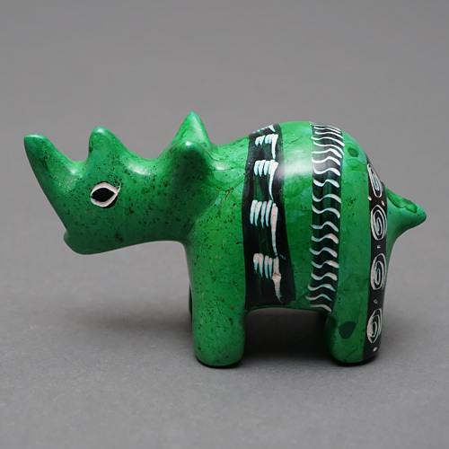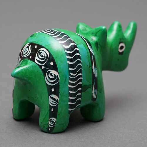 柔らかく加工しやすい石を削って作られた丸りとしたサイの置物です。